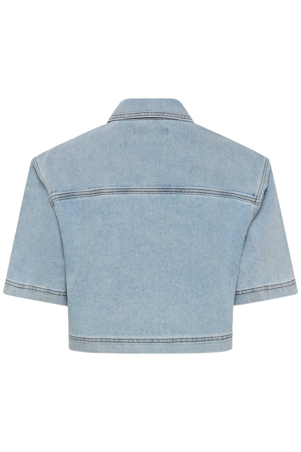 Das Kaffe Jeansshirt "Minna" verbindet klassischen Denim-Charme mit einer modernen, verkürzten Silhouette. Die helle Waschung sorgt für einen lässigen Look, während der Hemdkragen und die aufgesetzten Brusttaschen dem Design eine zeitlose Note verleihen. Dank des robusten Denim-Materials bietet das Shirt angenehmen Tragekomfort und vielseitige Stylingmöglichkeiten - perfekt kombiniert mit High-Waist-Hosen, Röcken oder Shorts für einen trendigen Alltagslook.