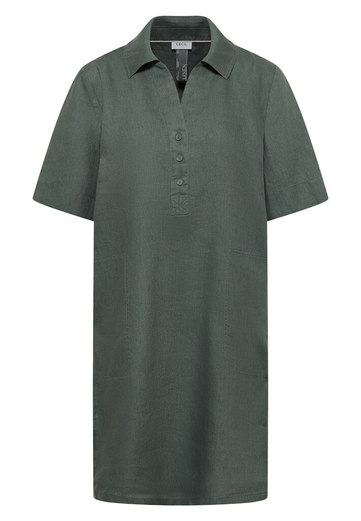 Das knielange Leinenkleid von CECIL für Damen begleitet dich leicht und luftig durch warme Tage. Die angenehme Qualität sorgt für ein komfortables Tragegefühl, während Hemdkragen und dekorative Knopfleiste dem Casual-Look eine gepflegte Note verleihen. Kurze Ärmel und seitliche Taschen machen das Kleid besonders alltagstauglich. Ideal, wenn du ein sommerliches Kleid suchst, das unkompliziert ist und sich vielseitig kombinieren lässt. Knielanges Kleid aus Leinen Casual Hemdkragen mit dekorativer Knopfleiste Kurzarm Leicht und sommerlich Material: 100% Leinen