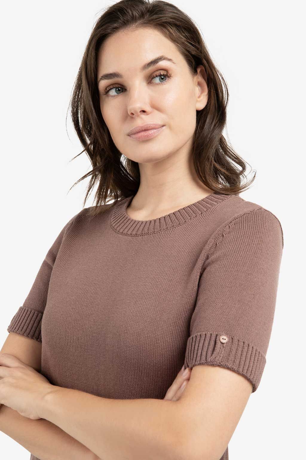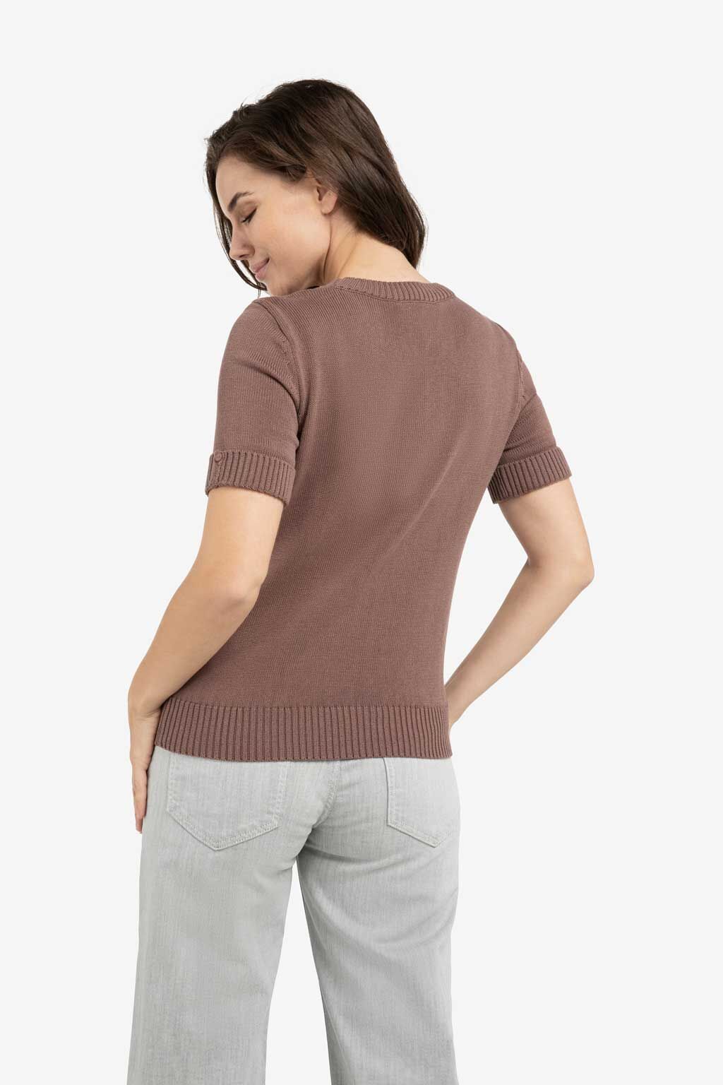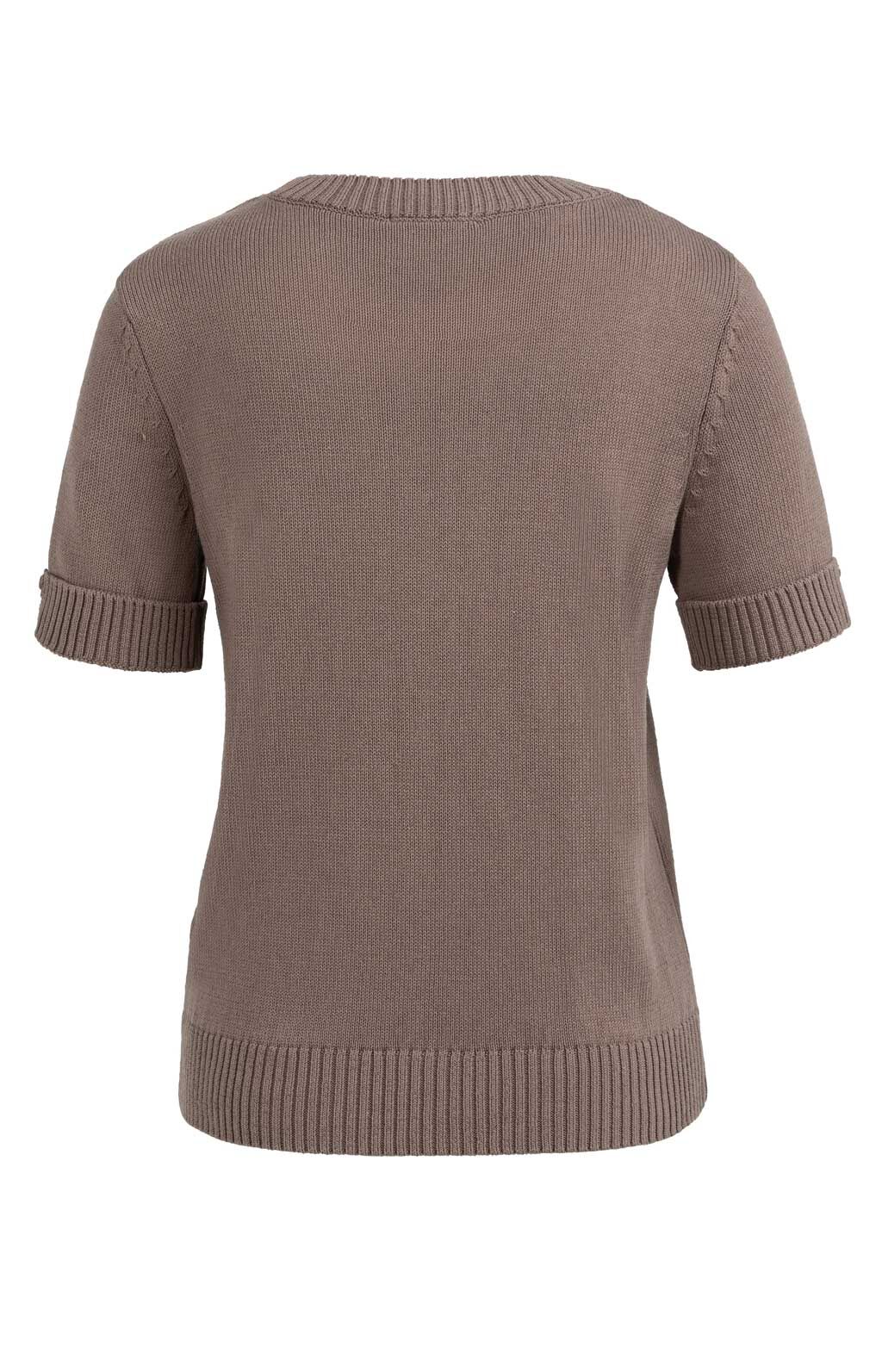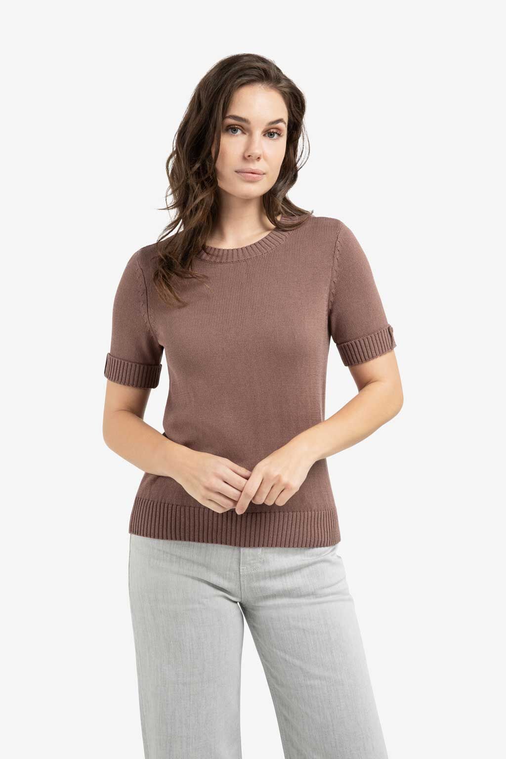 Dieser elegante Pullover aus weichem Feinstrick hat kurze Ärmel mit umgeschlagenen Bündchen. Der Rundhalsausschnitt und die normale Passform sorgen für einen zeitlosen Look. Gerippte Details an Saum und Ärmeln runden das Design ab. Ein vielseitiges Kleidungsstück, das sich perfekt für lässig-stilvolle Outfits eignet. Das Model ist 178 cm groß und trägt Größe S.