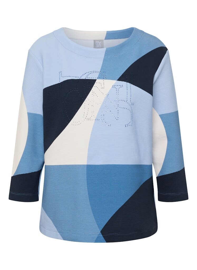 Dieses Shirt begeistert mit einem auffälligen grafischen Muster in harmonisch aufeinander abgestimmten Farbtönen. Funkelnde Ziersteine setzen das dezente Schrift-Detail effektvoll in Szene. Der klassische Rundhalsausschnitt und die angenehme Qualität sorgen für hohen Tragekomfort. Perfekt, um schlichte Looks aufzuwerten oder modische Statements zu setzen.Grafisches Allover-Muster.Rundhalsausschnitt.3/4-Arm.Schriftzug mit Ziersteinen.Angenehme Qualität.