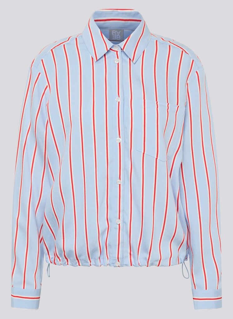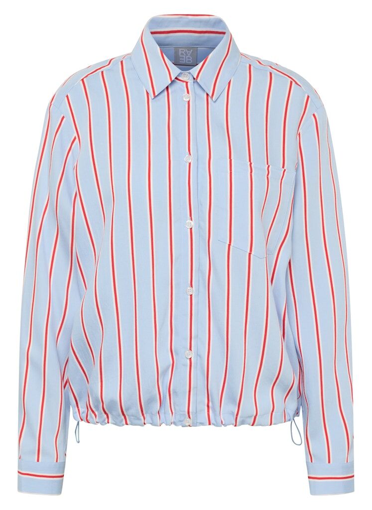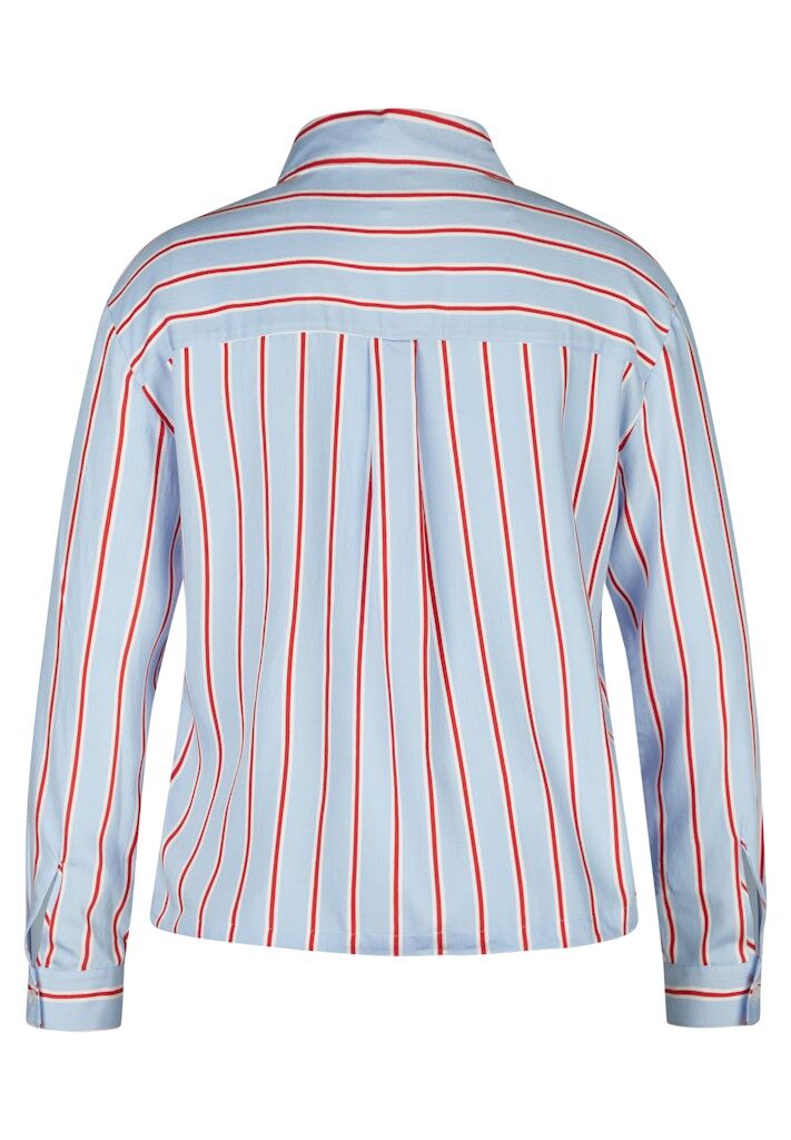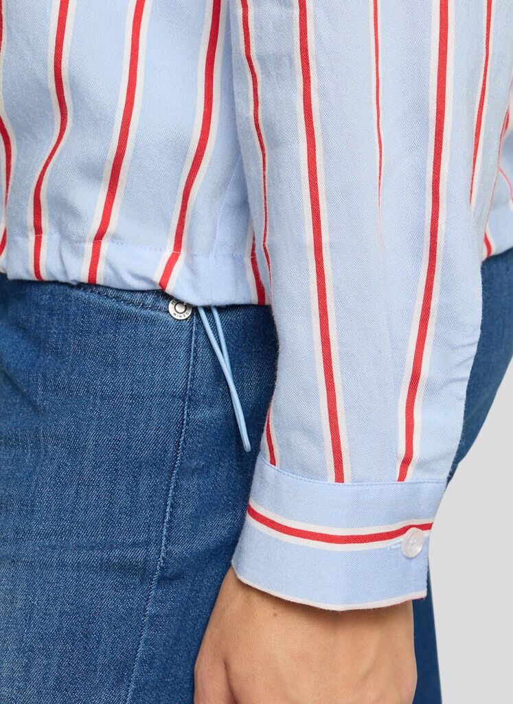Diese Hemdbluse kombiniert klassische Elemente mit sportivem Twist: Der lockere Schnitt und der leichte Baumwollstoff bieten angenehmen Tragekomfort, während der Tunnelzug am Saum für eine individuelle Silhouette sorgt. Vertikale Streifen in Rot und Weiß auf hellblauem Grund verleihen der Bluse eine frische, moderne Ausstrahlung. Der Rücken ist mit einer quer verlaufenden Passe gearbeitet, die das Design harmonisch abrundet. Tunnelzug am Saum. Klassischer Hemdkragen. Vertikales Streifenmuster. Brusttasche links.