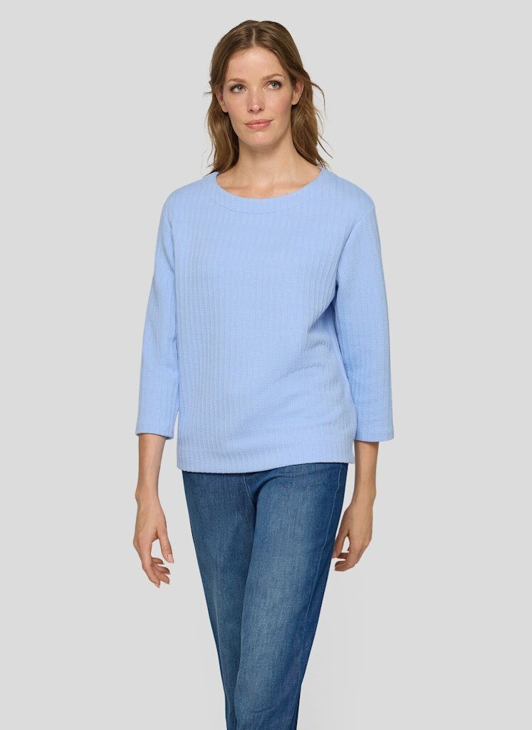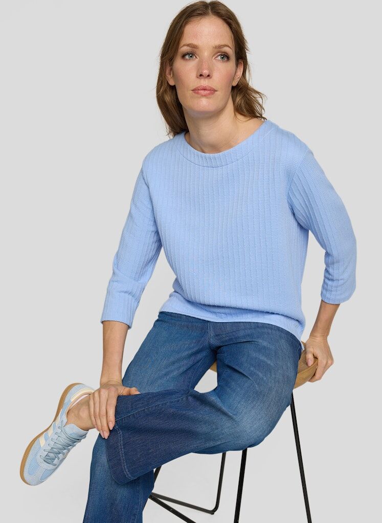 Der weiche Jersey mit feiner Rippstruktur macht dieses Shirt zum unkomplizierten Allrounder. Dank lockerer Passform, 3/4-Arm und kleinen Seitenschlitzen lässt es sich vielseitig stylen _ ob solo zu Jeans oder unter Blazern. Der Rundhalsausschnitt rundet das Design klassisch ab.Weicher Jersey mit Struktur. Seitenschlitze am Saum. Rundhalsausschnitt. Ärmel in 3/4-Länge. Bequeme Form.