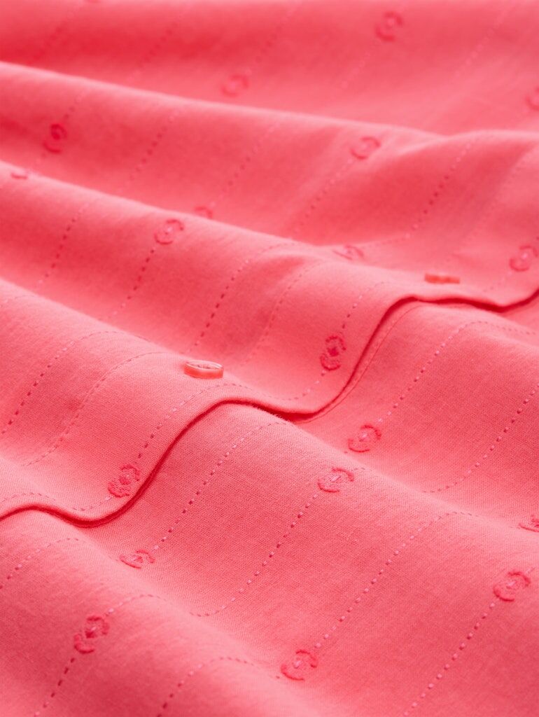 Locker geschnittene Bluse mit Rundhalsausschnitt und Knopfleiste. Mit fixiertem Ärmelaufschlag sowie leichten Raffungen an den Schultern und auf der Rückseite. Aus einem strukturierten Dobby-Gewebe.