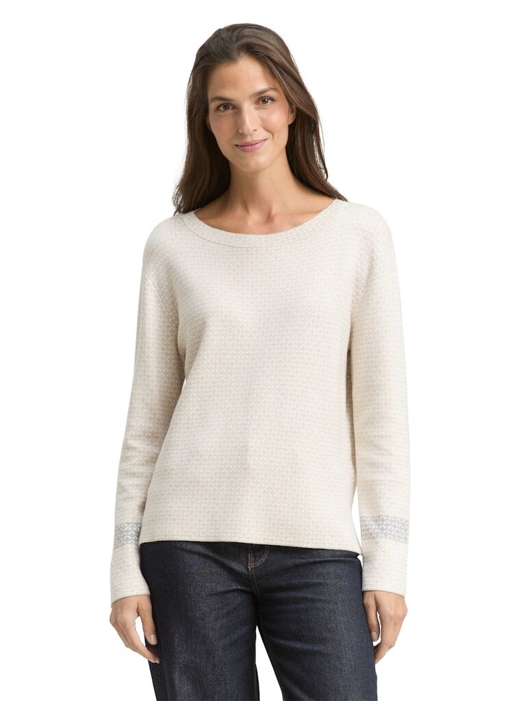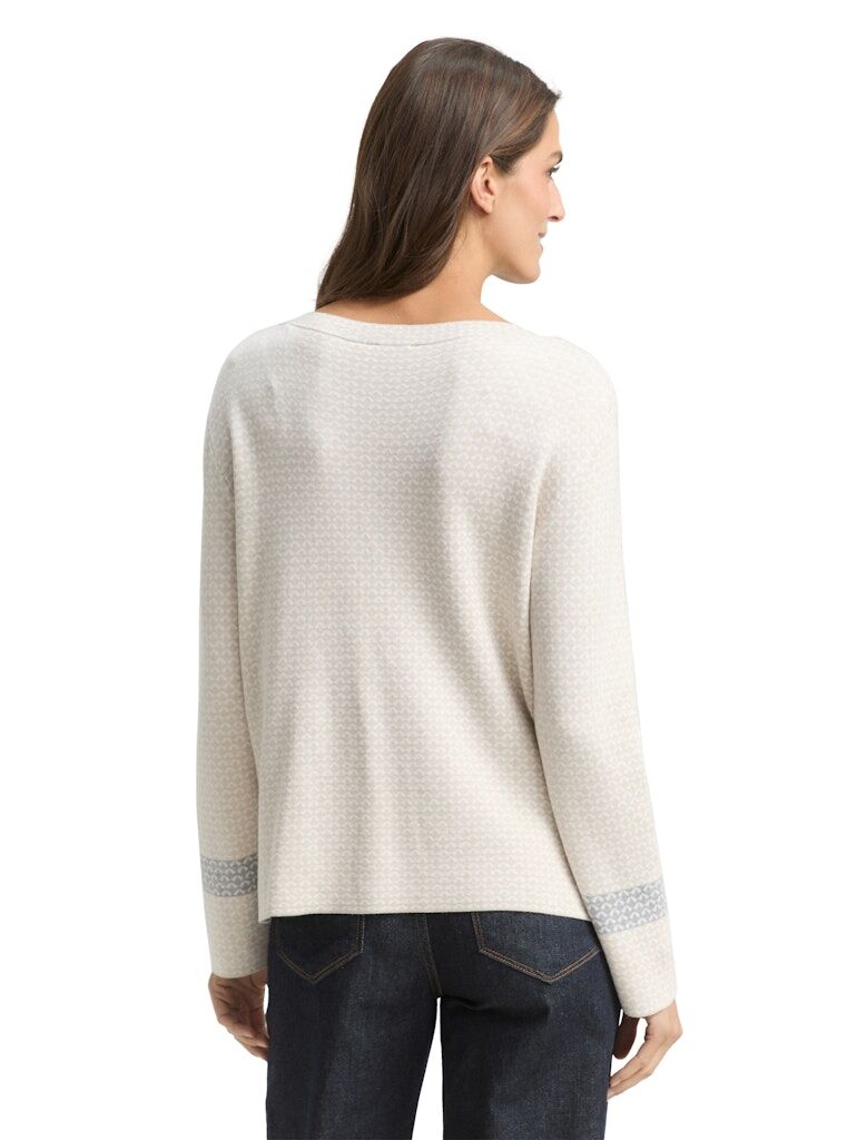Gemusterter Pullover mit kurzen Seitenschlitzen und überschnittener Schulternaht für eine lockere Passform
