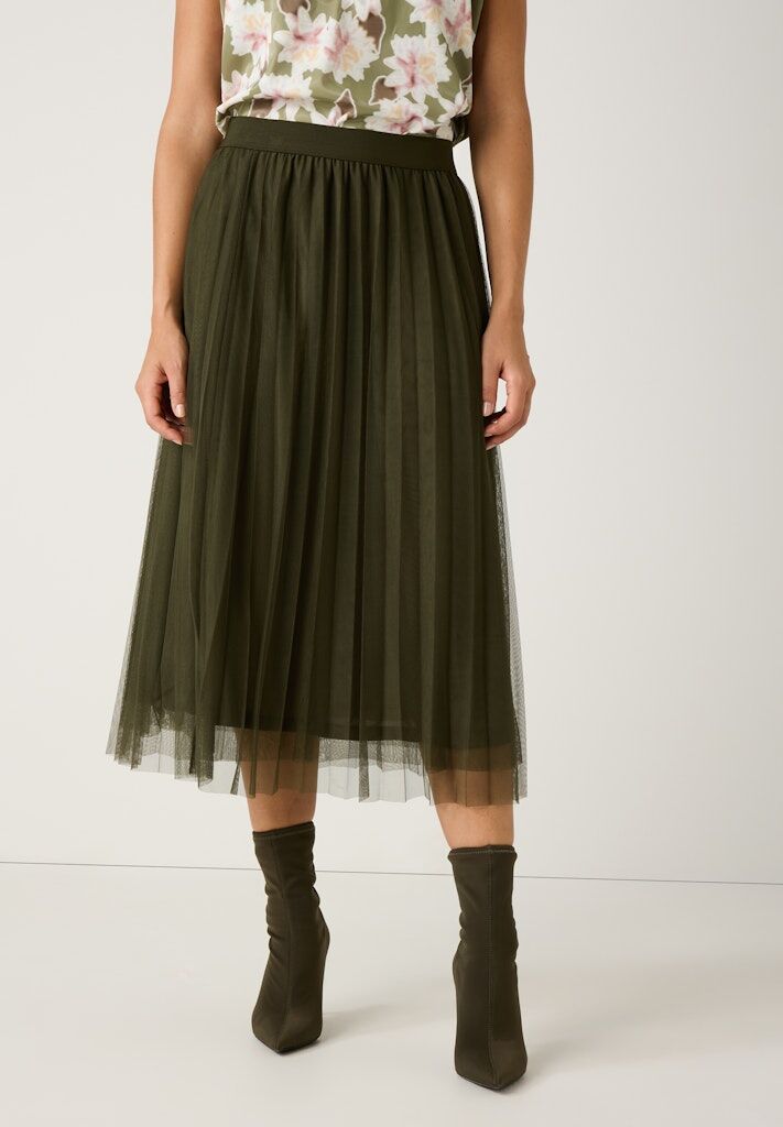Der feminine Meshrock von MORE & MORE mit Plisséefalten und Gummibund kann mit lässigem Pullover genauso gut gestylt werden wie mit eleganter Satinbluse oder sportivem Shirt.
