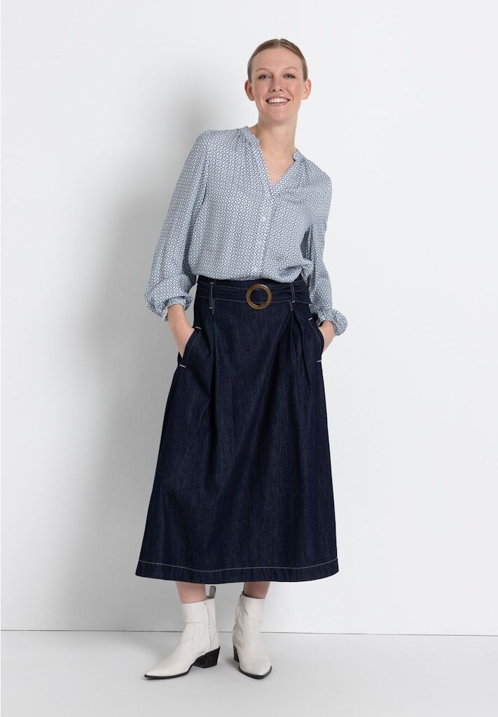 Die feminine Viskosebluse von MORE & MORE mit grafischem Allover-Print in ecru/hellblau/marine/beige ist eine tolle Ergänzung zum klassischen Business-Anzug. Sie kann aber genauso gut mit lässiger Jeans oder sportiver Chino gestylt werden.