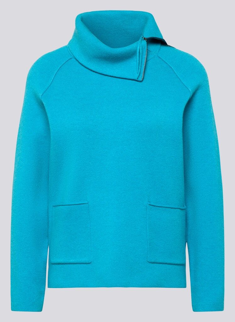 Dieser Feinstrickpullover überzeugt mit sportivem Design und einem lässigen Schnitt. Der leicht asymmetrische Stehkragen mit Reißverschluss setzt einen modernen Akzent. Zwei aufgesetzte Taschen runden den Look praktisch ab. Die weiche, glatte Qualität sorgt für angenehmen Tragekomfort _ ideal für entspannte Tage oder stilvolle Freizeitlooks. Weiche Feinstrick-Qualität. Asymmetrischer Stehkragen mit Reißverschluss. Aufgesetzte Taschen vorn. Lässig geschnitten. Formstabil und pflegeleicht.