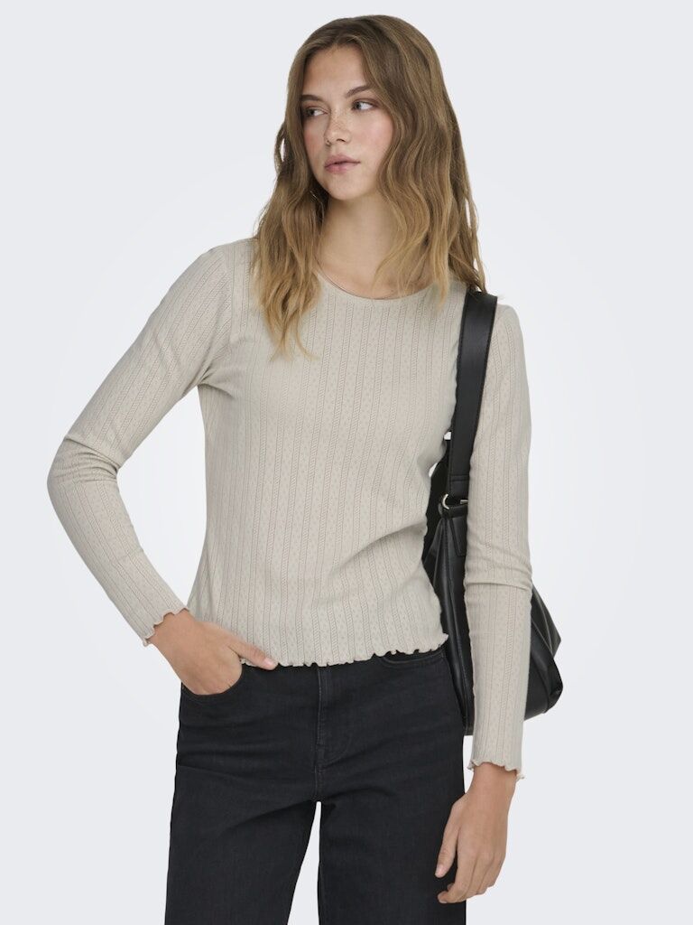 Keine Garderobe ist komplett ohne weiche und zeitlose Basics, die perfekt für jeden Anlass in jeder Jahreszeit sind.Baumwolle besteht aus natürlichen Fasern, die ein weiches, atmungsaktives Material bilden. - Produkttyp : Top - Hals : Rundhals - Ärmel : Langarm - Details : Rüschen - Passform : Normal geschnitten