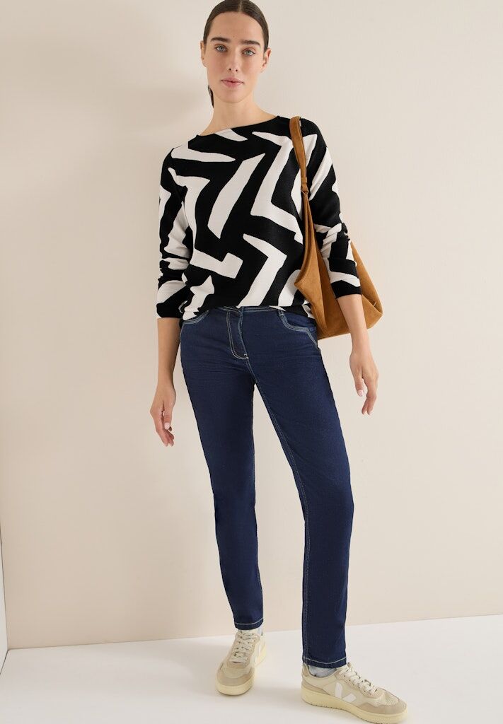 Das Ottoman Shirt mit Muster von CECIL für Damen überzeugt mit grafischem Design und angenehmem Tragegefühl. Der weiche Viskosemix mit Stretchanteil, der U-Boot-Ausschnitt und die langen Ärmel machen es zum idealen Begleiter für stilvolle Everyday-Looks.