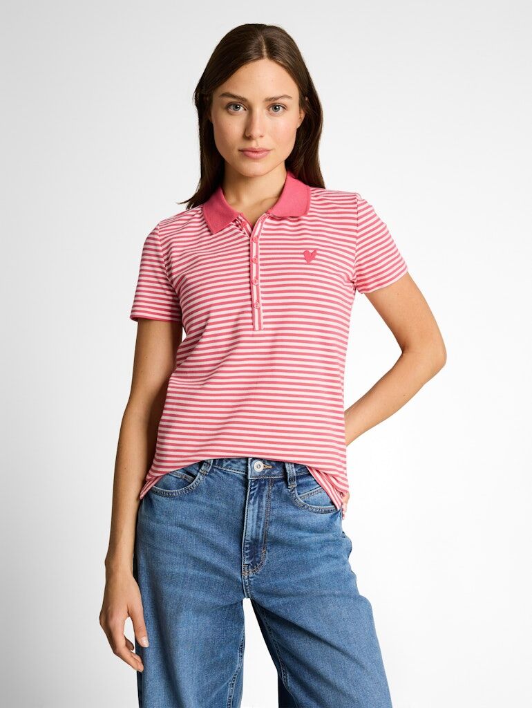 Gestreiftes Polohemd mit kleinem Herz-Motiv auf der Brust. Mit feiner Knopfleiste und Kragen. Aus pflegeleichtem Piqué-Stoff aus Baumwolle mit leichtem Stretch-Anteil für einen angenehmen Tragekomfort.