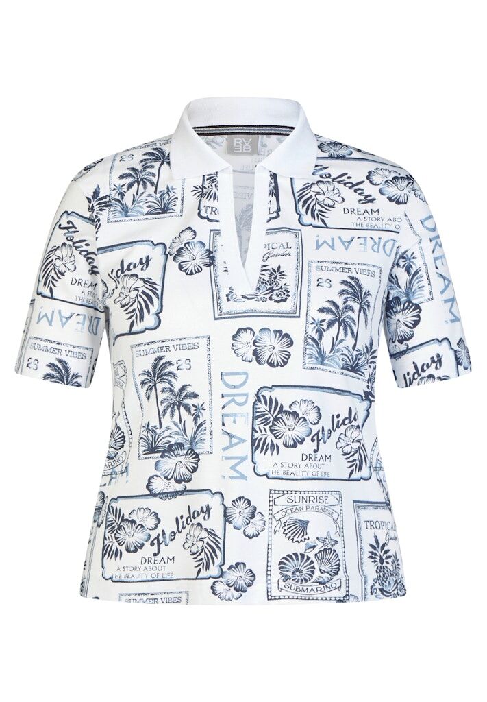Der dekorative Allover-Print verleiht diesem Poloshirt eine frische, sommerliche Ausstrahlung. Der klassische Polokragen mit V-Ausschnitt sorgt für eine sportive Note und lockert das Design zugleich auf. Die bequeme, gerade Form trägt sich angenehm im Alltag und lässt sich vielseitig kombinieren. Kurze Ärmel runden den lässigen Stil ab. Baumwollmix mit Stretch. Polokragen mit V-Ausschnitt. Halbarm. Sommerlicher Allover-Print. Gerade Passform.