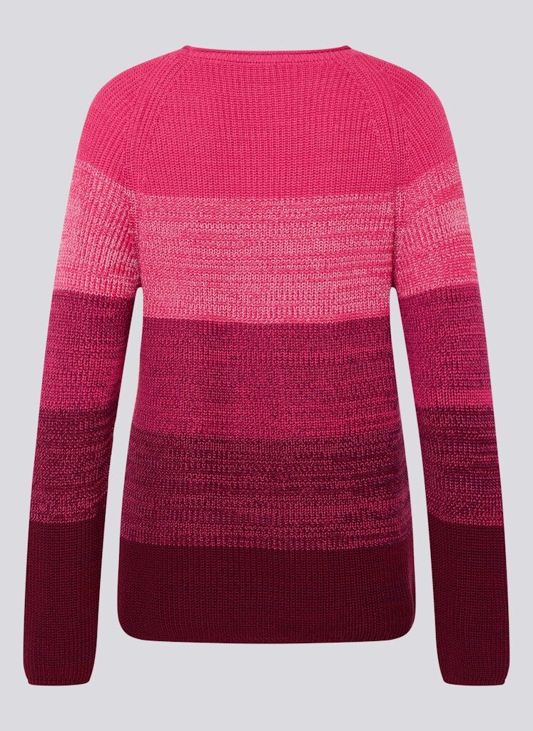 Dieser Pullover setzt auf Struktur und Verlauf: Ein sportlicher Rundhalsausschnitt und Raglanärmel treffen auf markante Strickstruktur mit modisch abgestuftem Farbverlauf. Die weiche Qualität mit hohem Baumwollanteil macht ihn pflegeleicht und angenehm zu tragen. Strukturstrick mit Farbverlauf. Rundhalsausschnitt. Raglanärmel. Bequeme Passform.