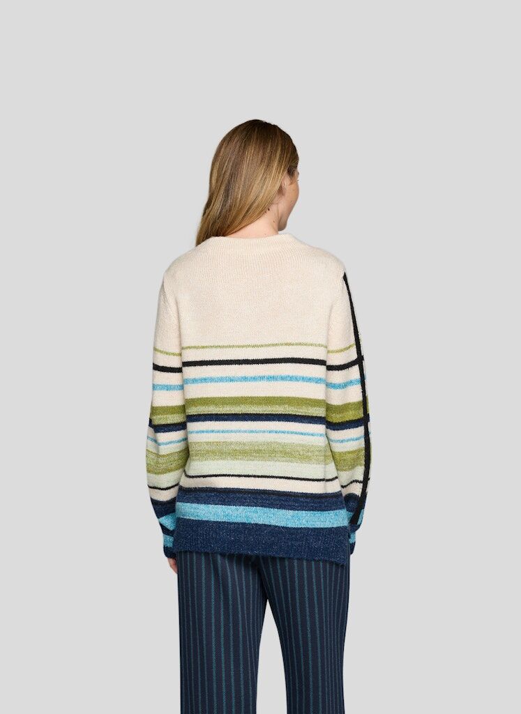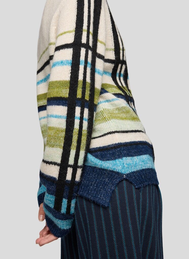 Dieser gemütliche Pullover überzeugt mit einem besonders soften Griff dank wärmendem Alpaka-Anteil. Das mehrfarbige Streifenmuster verleiht ihm eine lebendige Optik, während der kleine Stehkragen dezent schützt. Die kuschelige Maschenstruktur sorgt für angenehmen Tragekomfort an kühlen Tagen. Mit wärmendem Alpaka-Anteil. Strukturierter Feinstrick. Kleiner Stehkragen. Gerader Schnitt. Multicolor-Streifendessin.