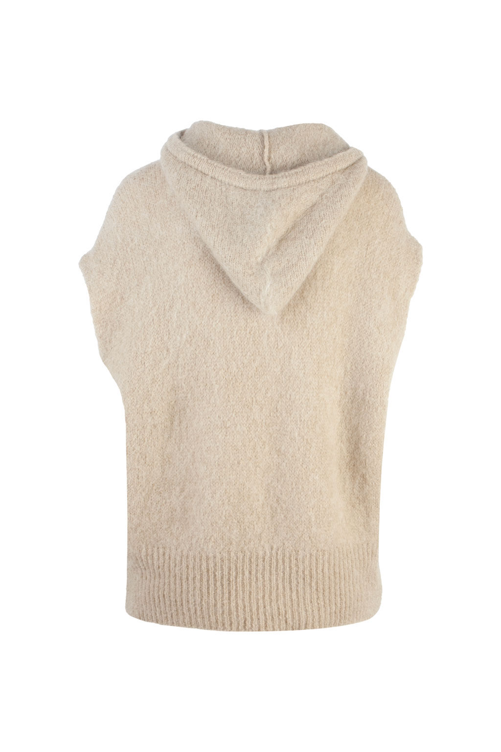 Der Pullunder mit Kapuze von Coll64 in einem edlen Beigeton ist ein echtes Wohlfühlteil mit modischer Aussage. Die kuschelige Strickstruktur trifft auf ein sportliches Kapuzendesign und macht dieses ärmellose Oberteil zur idealen Wahl für stylische Layering-Looks. Ob zu Blusen, Langarmshirts oder allein getragen - dieser Pullunder vereint Komfort und Lässigkeit auf stilvolle Weise.