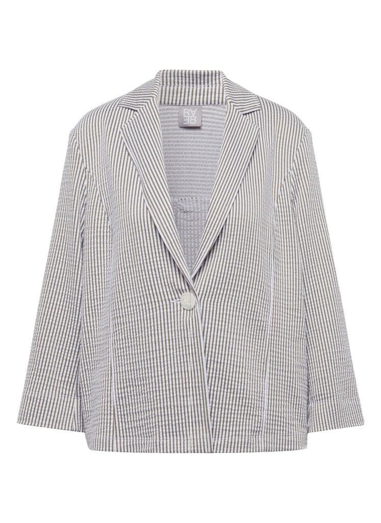 Der leicht taillierte Schnitt schmeichelt der Figur, während die 3/4-Ärmel für eine moderne Note sorgen. Ein einreihiger Knopfverschluss verleiht dem Blazer eine edle Optik und macht ihn ideal für Business- oder Casual-Outfits. Klassisches Streifenmuster für einen zeitlosen Look. Leichter, angenehmer Stoff für optimalen Tragekomfort. 3/4-Ärmel für einen modernen Touch. Ein-Knopf-Verschluss für eine stilvolle Silhouette. Perfekt kombinierbar mit Blusen, Shirts oder leichten Sommerhosen.