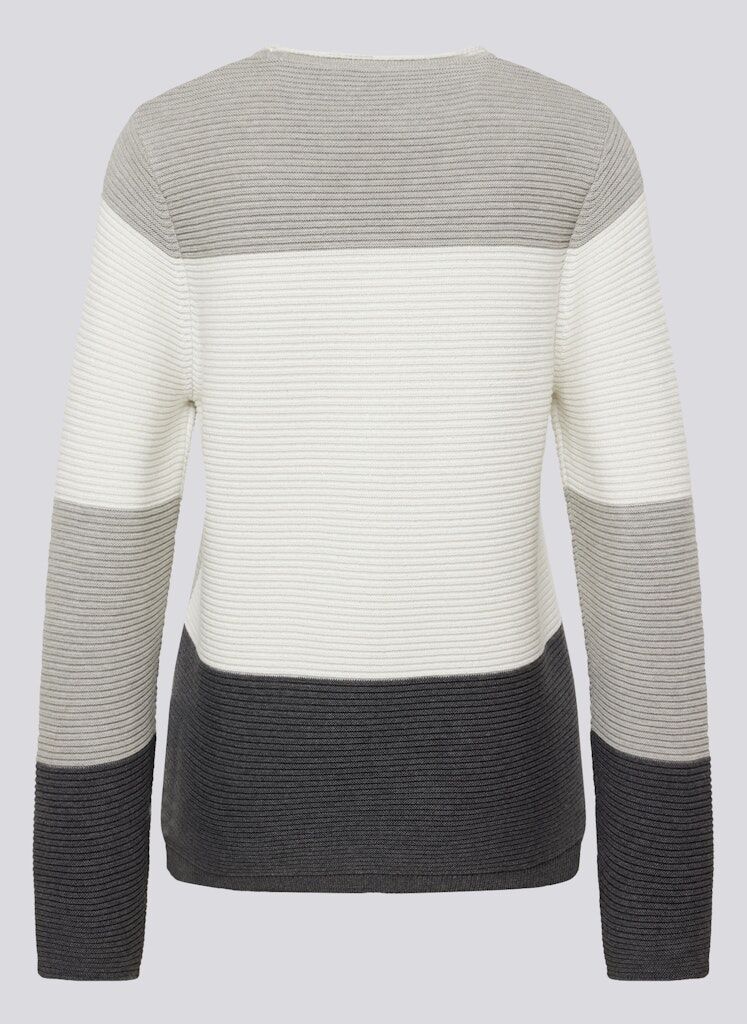 Dieser stilvolle Pullover mit modernem Colorblocking-Design vereint Eleganz und Komfort für vielseitige Looks. Stilvolles Colorblocking in harmonischen Grau- und Cremetönen für einen zeitlosen Look. Angenehmer Tragekomfort durch hochwertiges Material. Klassischer Rundhalsausschnitt, der vielseitig kombinierbar ist. Perfekt für Freizeit-Outfits gleichermaßen geeignet.