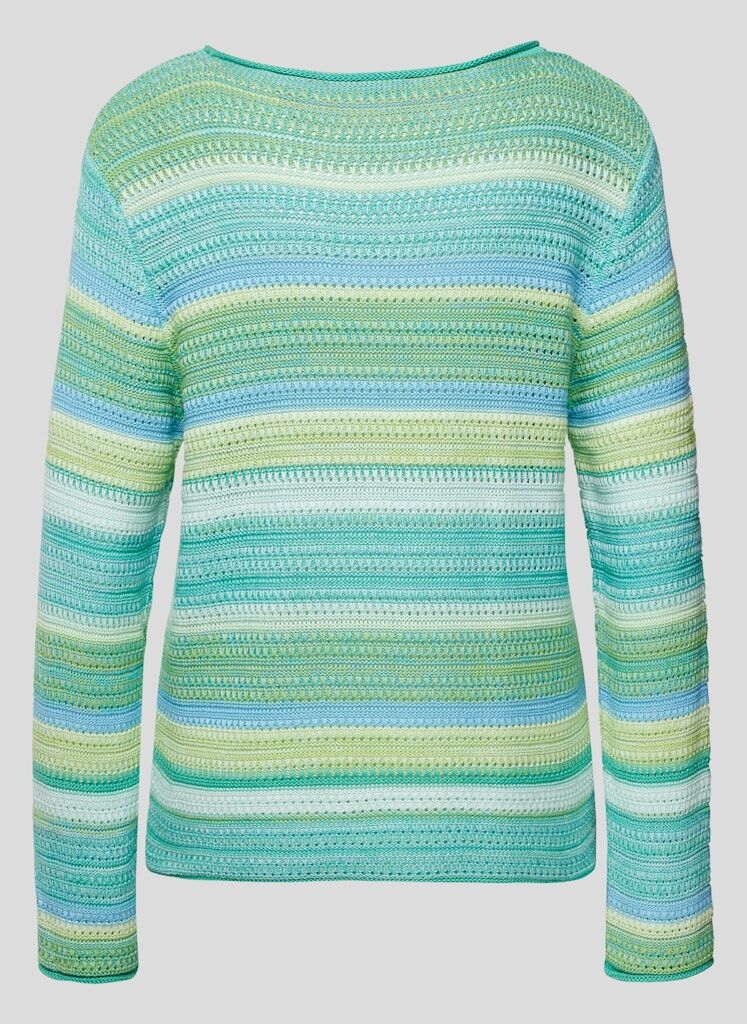 Dieser Pullover kombiniert modisches Design mit höchstem Tragekomfort. Die pastellfarbenen Streifen in Grün- und Blautönen zaubern einen frischen Look, der perfekt zu jeder Jahreszeit passt. Harmonisches Streifenmuster _ Frische Farben für jeden Anlass. Feines Strickmuster _ Modisch und komfortabel zugleich. Bringen Sie Farbe in Ihre Outfits und genießen Sie den perfekten Mix aus Stil und Komfort!