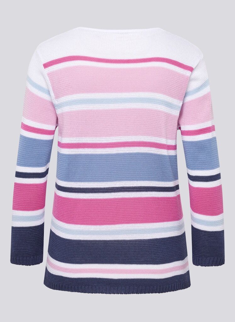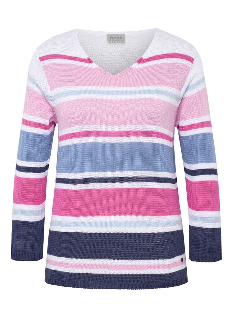 Die luftige Strickstruktur sorgt für ein angenehmes Tragegefühl, während der V-Ausschnitt eine feminine Note verleiht. Modernes Streifenmuster in erfrischenden Farben. V-Ausschnitt für eine schmeichelnde Silhouette. Leichter Strick _ ideal für jede Jahreszeit. Perfekt zu Jeans, Stoffhosen oder Röcken _ dieser Pullover ist ein vielseitiges Must-have für stilbewusste Looks!