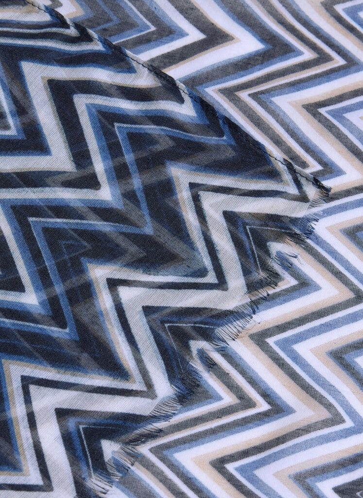 Schicker Schal mit Zickzack-Muster in Blau- und Beigetönen _ Dieser Schal verleiht jedem Outfit einen modernen, lebendigen Akzent und sorgt für einen stilvollen Look. Trendiges Zickzack-Muster. Leichtes Material _ Angenehm auf der Haut und ideal für das ganze Jahr. Perfekt für Casual- und Business-Outfits. Fransenkanten _ Lockere Abschlüsse für einen lässigen Touch.