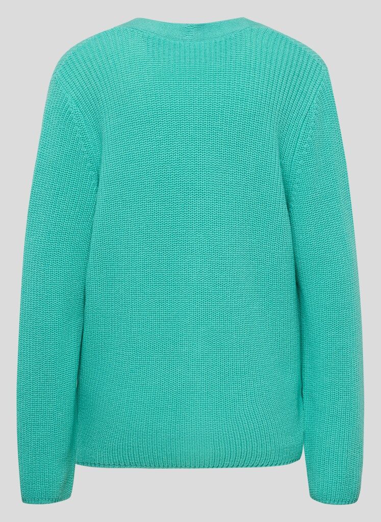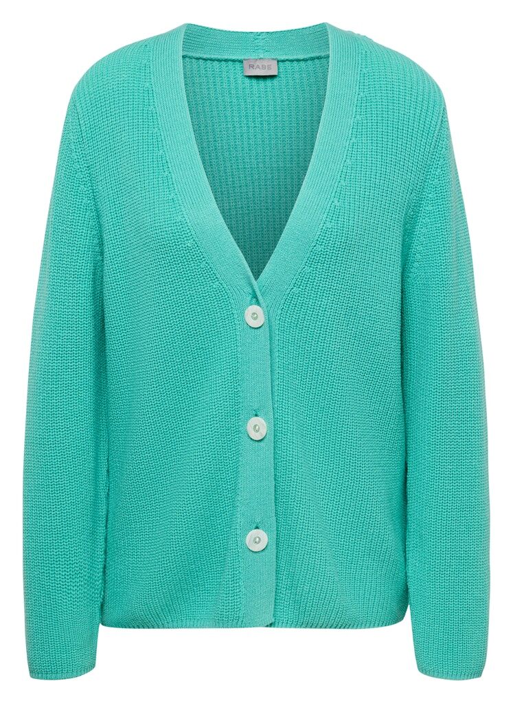 Dieser Strick-Cardigan überzeugt durch seinen lässigen Schnitt, das gerippte Design und die frische Farbgebung, ideal für modische Layering-Outfits. Geripptes Strickmuster - Modernes Design mit strukturierter Optik. V-Ausschnitt - Femininer Look, perfekt für Kombinationen mit Shirts oder Blusen. Knopfleiste - Praktisch und stilvoll für individuelles Styling. Weiches Material - Angenehm auf der Haut und ideal für kühle Tage.