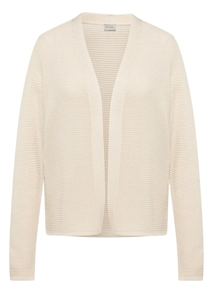 Diese offen geschnittene Strickjacke von RABE überzeugt durch ihre schlichte Eleganz und eine angenehm leichte Strukturqualität. Der klassische Schnitt ohne Verschluss macht sie zum perfekten Begleiter für vielseitige Outfits _ von casual bis gepflegt.Luftiger Strukturstrick für ein angenehmes Tragegefühl.Offenes Design ohne Verschluss für moderne Lässigkeit.Langarm _ ideal für kühlere Tage und Übergangszeit.Hochwertige Verarbeitung für eine edle Optik.Vielseitig kombinierbar mit Tops, Blusen oder Kleidern.