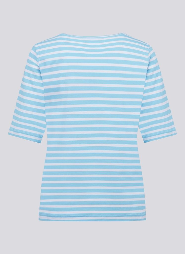 Die harmonische Farbkombination wirkt modern und zugleich klassisch. Der runde Ausschnitt und die halblangen Ärmel sorgen für einen angenehmen Tragekomfort und machen das Shirt zum perfekten Begleiter für den Alltag. Maritimer Streifen-Look für einen frischen Style. Weicher Stoff für maximalen Komfort. Figurschmeichelnder Schnitt _ ideal für viele Kombinationen. Ein Must-Have für alle, die den lässig-eleganten Look lieben!