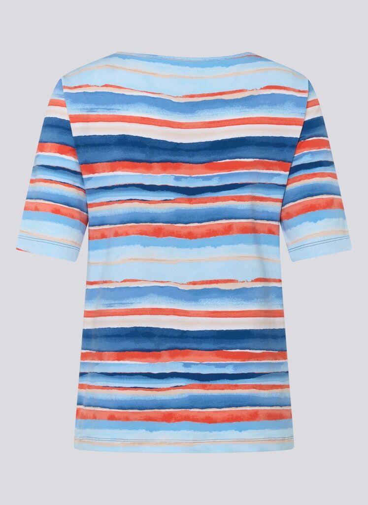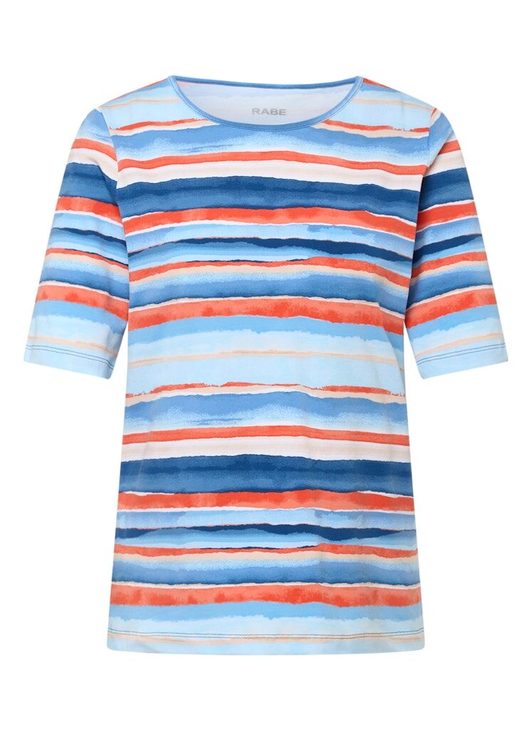 Dieses stilvolle Damen Shirt von RABE begeistert mit einem modernen Look und angenehmem Tragegefühl. Das ausdrucksstarke Aquarell-Streifendessin verleiht jedem Outfit das gewisse Etwas _ perfekt für Alltag, Freizeit oder City-Tour.Exklusives Aquarell-Streifenmuster im kreativen Design.Halbarm für optimalen Komfort in der Übergangszeit.Hochwertige Verarbeitung für langlebige Qualität.Bequemer Rundhalsausschnitt für eine feminine Passform.Vielseitig kombinierbar _ ideal zu Jeans, Stoffhose oder Rock.