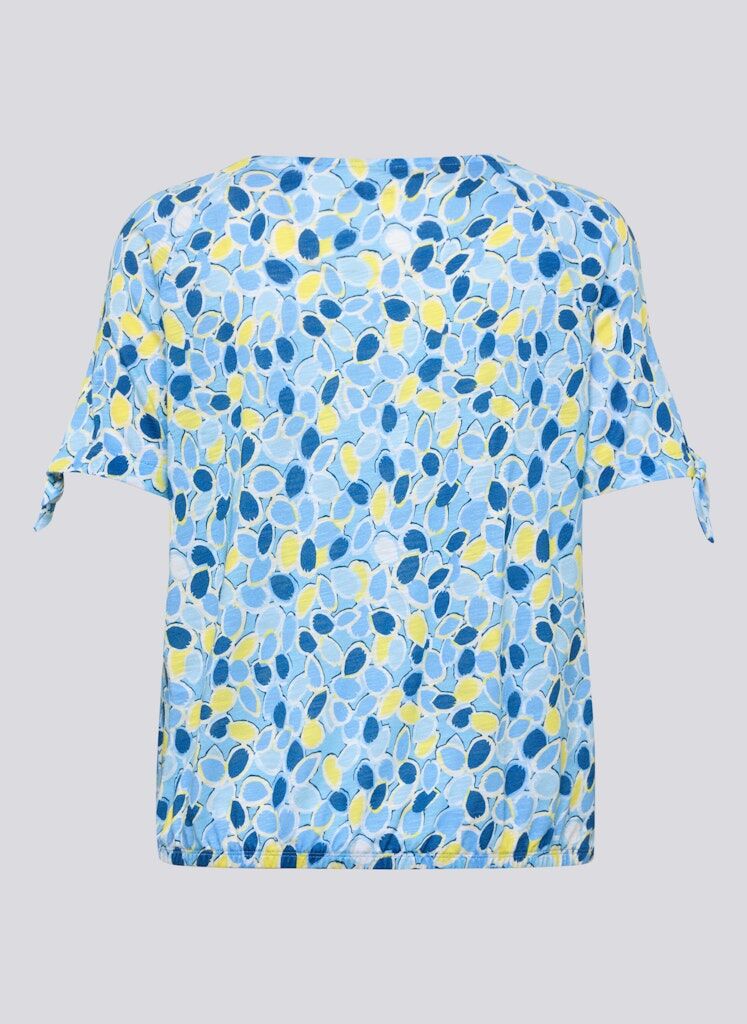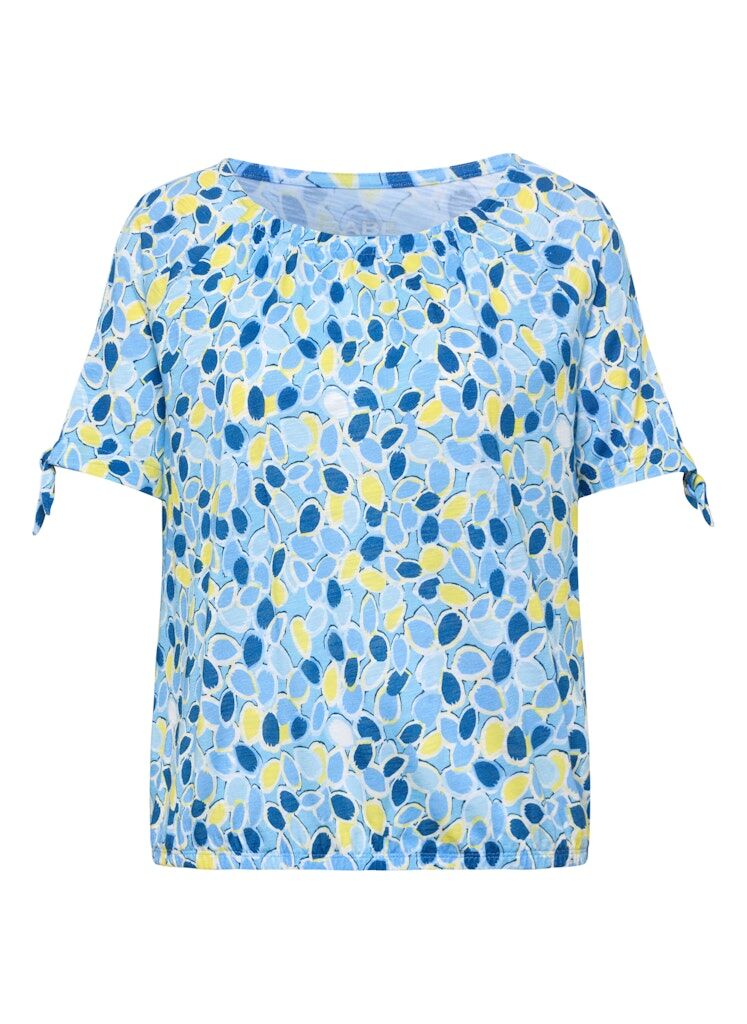 Dieses Shirt überzeugt mit einem frischen, abstrakten Print und liebevoll gestalteten Details. Der locker fallende Schnitt und die Bindebänder an den Ärmeln machen es zu einem charmanten Begleiter für warme Tage.Allover-Print in lebendiger Farbkomposition.Rundhalsausschnitt mit feiner Raffung für eine feminine Note.Kurze Ärmel mit dekorativen Bindebändern.Weiche, luftige Jersey-Qualität.Angenehm zu tragen und vielseitig kombinierbar.