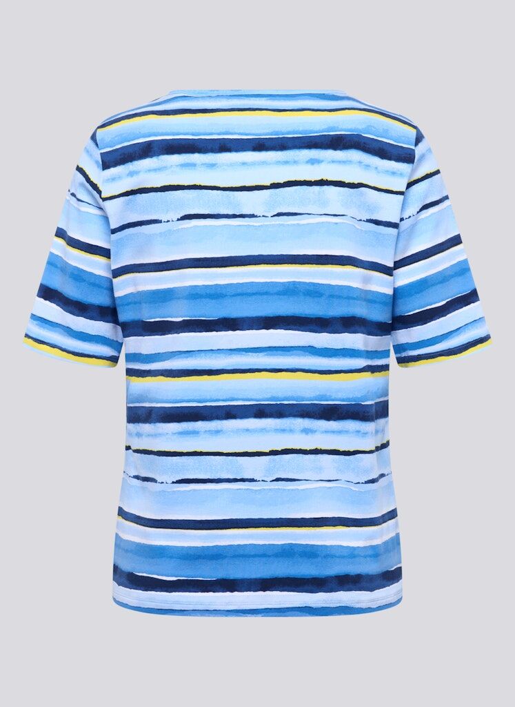 Dieses Shirt interpretiert das klassische Streifendesign neu _ in aquarellähnlicher Optik mit harmonischen Farbübergängen. Die weiche Qualität und die halblangen Ärmel bieten optimalen Komfort für jeden Tag.Farbharmonisches Streifenmuster in Aquarell-Optik.Rundhalsausschnitt für einen zeitlosen Look.Halblange Ärmel _ bequem und modisch zugleich.Trageangenehme Jersey-Qualität mit Stretchanteil.Perfekt kombinierbar zu Jeans, Stoffhosen oder Röcken.