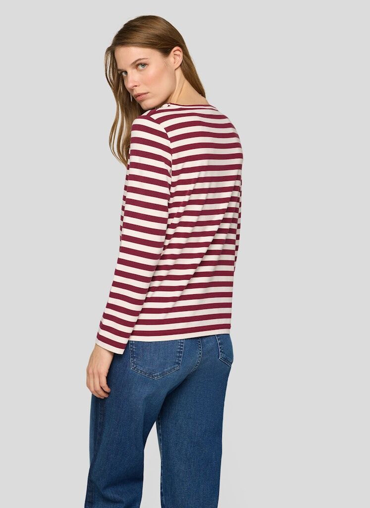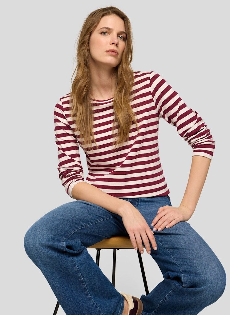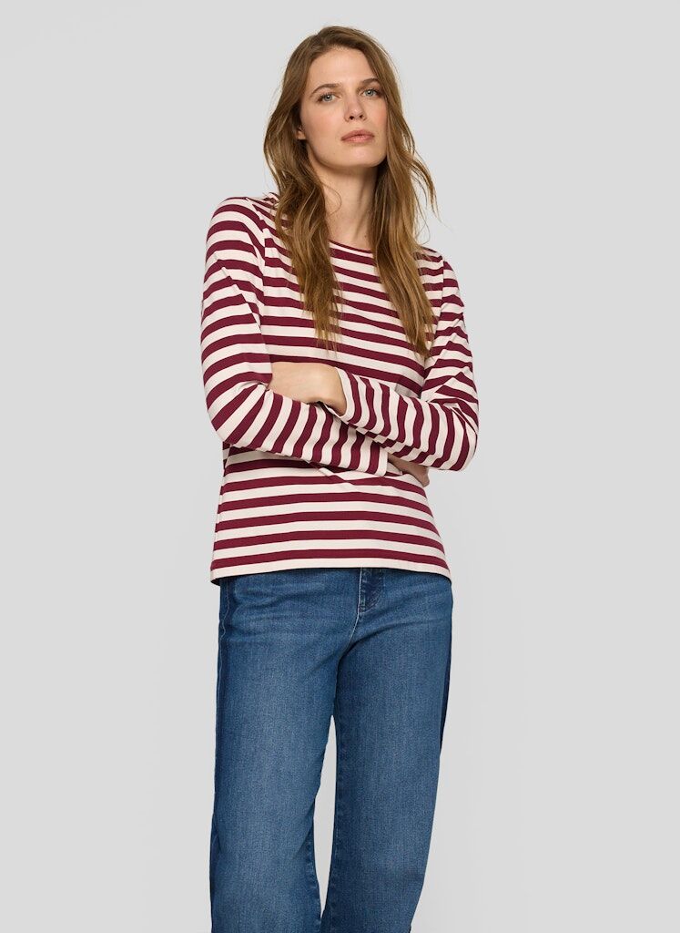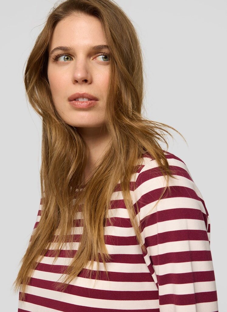 Das Shirt zeigt sich mit sportivem Querstreifenmuster und figurnaher Passform. Dank des Baumwoll-Anteils ist es besonders hautfreundlich, während der Stretch-Anteil für angenehme Bewegungsfreiheit sorgt. Der schlichte Rundhalsausschnitt rundet das Design alltagstauglich ab. Hautfreundlicher Baumwoll-Mix. Bequeme Stretch-Qualität. Zeitloses Streifenmuster. Rundhalsausschnitt. Figurnahe Passform.