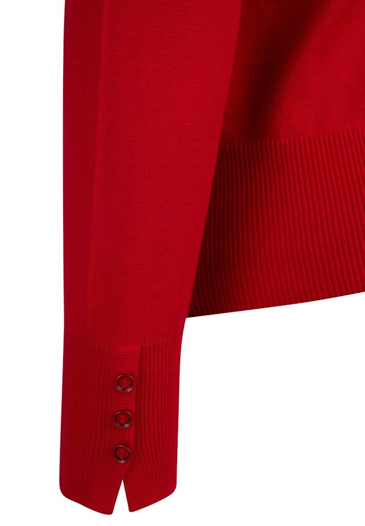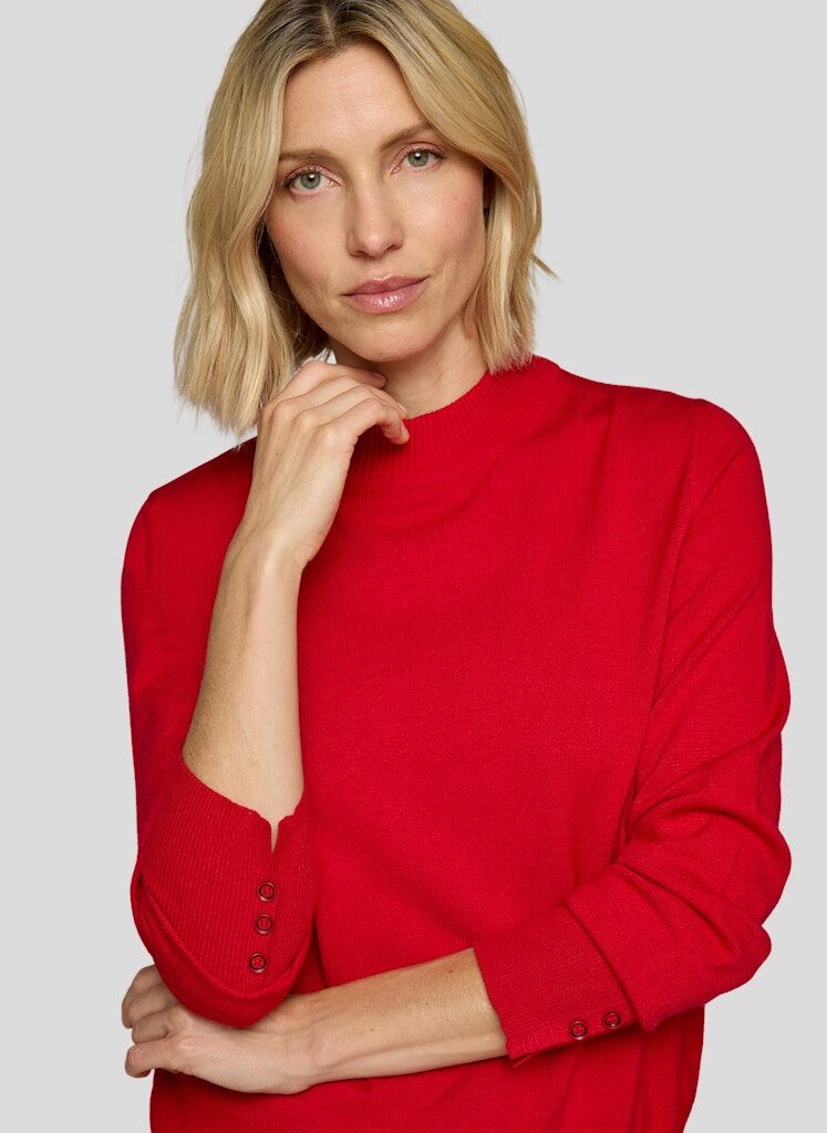 Der Pullover überzeugt mit seiner feinen Strickstruktur und dem klassischen Stehbund. Die langen Ärmel enden in breiten Rippbündchen, die mit drei kleinen Knöpfen stilvoll akzentuiert sind. Seitliche Schlitze am Saum sorgen für einen angenehmen Sitz. Der weiche Materialmix mit Modal-Anteil trägt sich besonders komfortabel. Feine Strickstruktur mit Stehbund. Breite Rippbündchen mit Knopfdetail. Seitenschlitze am Saum. Weiches, formstabiles Material. Langarm mit gepflegter Optik.