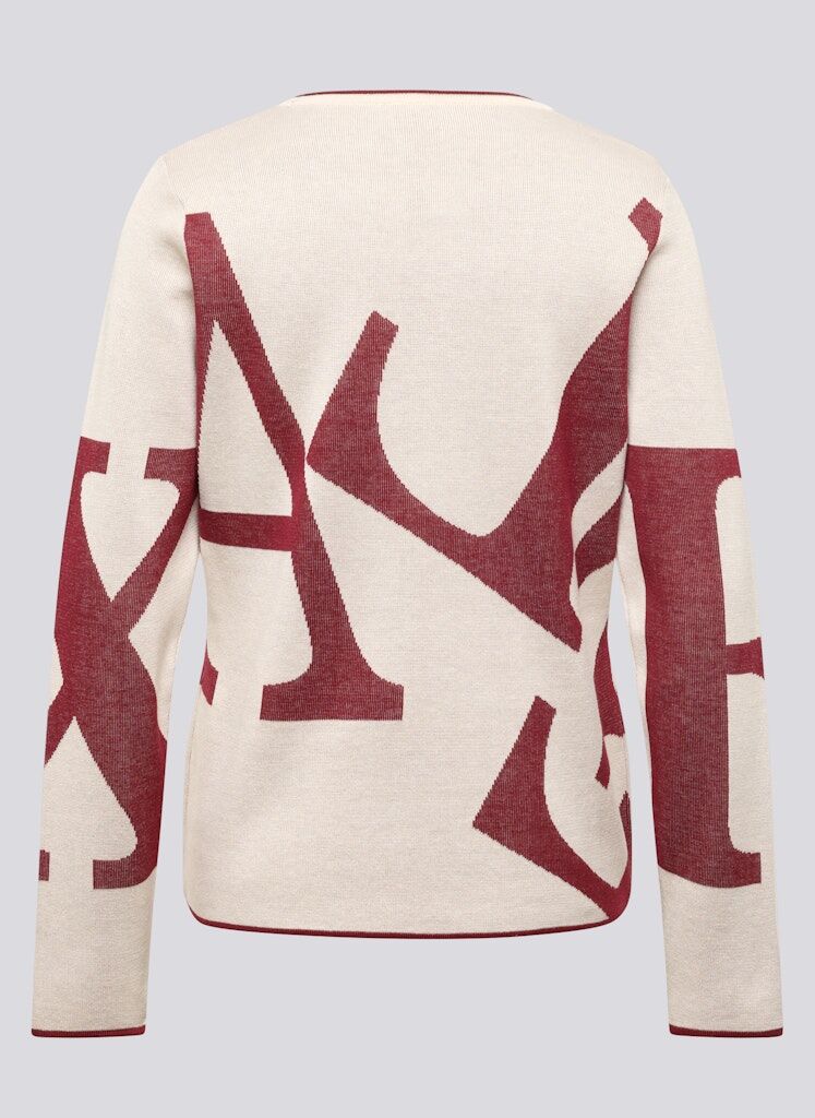 Ein echter Hingucker: Dieser Feinstrickpullover überzeugt mit seinem großflächig platzierten Buchstabenmotiv im Kontrast-Look. Der feminine Schnitt mit leicht taillierter Silhouette und die feine Qualität sorgen für angenehmen Tragekomfort. Die schmalen Kontrastkanten an Ausschnitt, Ärmeln und Saum setzen stilvolle Akzente und runden das Design modern ab. Feinstrick mit weichem Griff. Rundhalsausschnitt mit Kontrastkante. Auffälliges Buchstabenmotiv. Langarm mit schmalem Abschluss. Leicht taillierte Passform. Dekorative Strasssteine.
