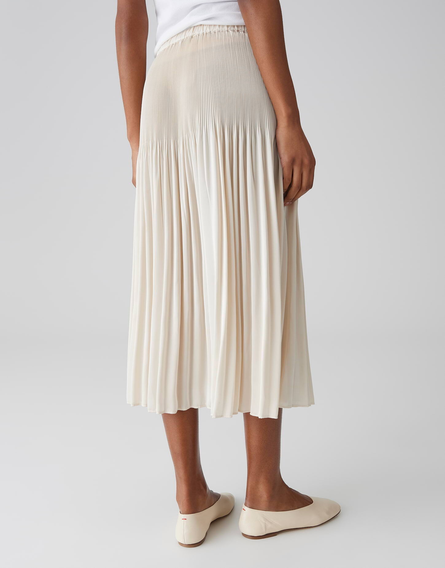- Materialeigenschaften: Plissiert, fließend, elastischer Bund