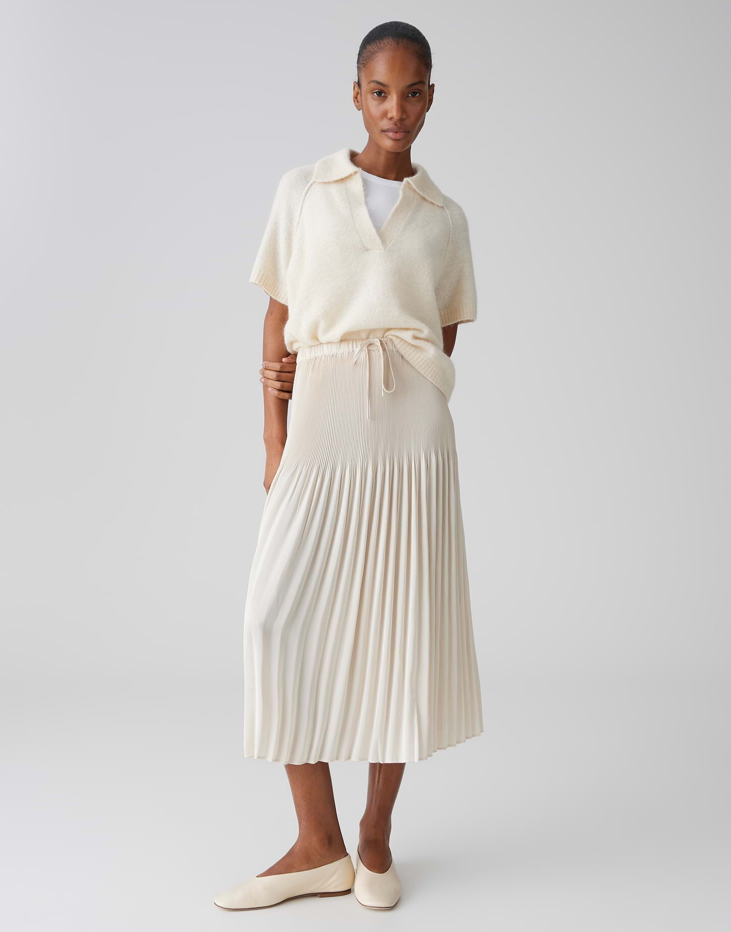 Dieser feminine Rock "Ribane french" von Opus überzeugt mit seiner eleganten, fließenden Silhouette und einem zeitlosen Look. In der sanften Farbe Natural Glaze gehalten, lässt sich das Modell vielseitig kombinieren - ob casual mit Sneakern oder schick mit Bluse und Absatzschuhen. Die feine Plissierung sorgt für eine schöne Bewegung beim Gehen, während der elastische Bund mit Bindeband optimalen Tragekomfort bietet. Ein stilvoller Begleiter für jeden Anlass.