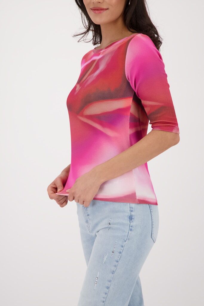 Dieses stilvolle Shirt aus fließender Viskose besticht mit elastischer Rippen-Struktur, einem Allover-Muster und einem schmeichelhaften U-Bootausschnitt.
