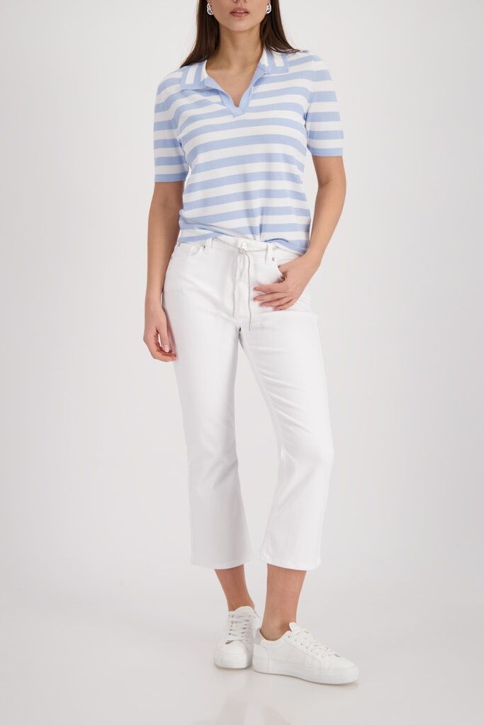 Dieser stilvolle Polo-Pullover aus fließender Viskose begeistert mit feinem Strick und einem eleganten, gestreiften Polo-Kragen.
