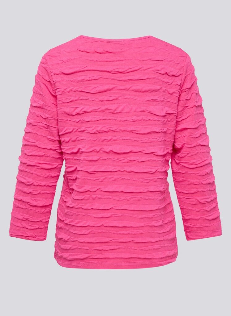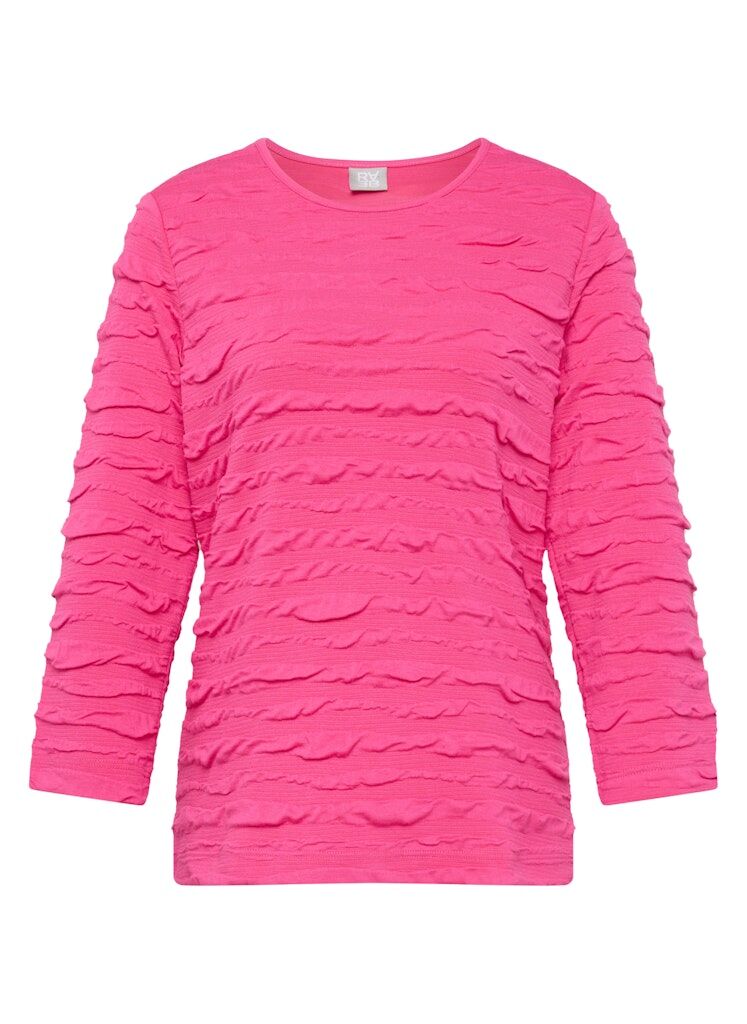 Figurnah geschnittenes Shirt mit lebendiger Struktur aus weichem Jersey. Die gewellte 3D-Optik verleiht dem unifarbenen Design Tiefe und Bewegung. Mit Rundhalsausschnitt und 3/4-Ärmeln ideal für vielseitige Kombinationen _ ob casual oder etwas schicker. Angenehm elastisch und pflegeleicht. Lebendige Wellen-Struktur. Weiche Jersey-Qualität. Figurnahe Passform. Pflegeleichtes Material. 3/4-Ärmel.