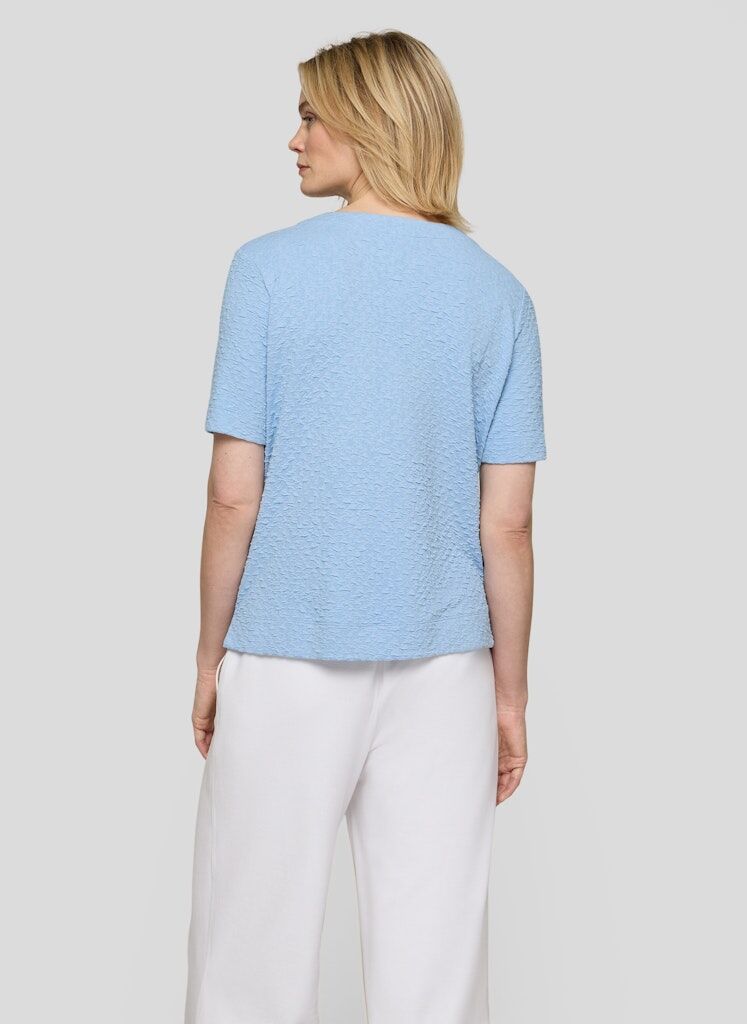 Dieses Shirt erhält durch seine dezente Struktur eine lebendige Oberfläche und wirkt zugleich angenehm leicht auf der Haut. Die Materialmischung mit hohem Viskoseanteil sorgt für ein geschmeidiges Tragegefühl, während Polyester und Elasthan Formstabilität und Bewegungsfreiheit unterstützen. Der kleine V-Ausschnitt unterstreicht die feminine Ausstrahlung und macht das Modell vielseitig kombinierbar _ ideal für gepflegte Alltags-Looks. Weiche Strukturware. Mit V-Ausschnitt. Hoher Viskoseanteil. Elastisch und formstabil. Angenehm leicht zu tragen.