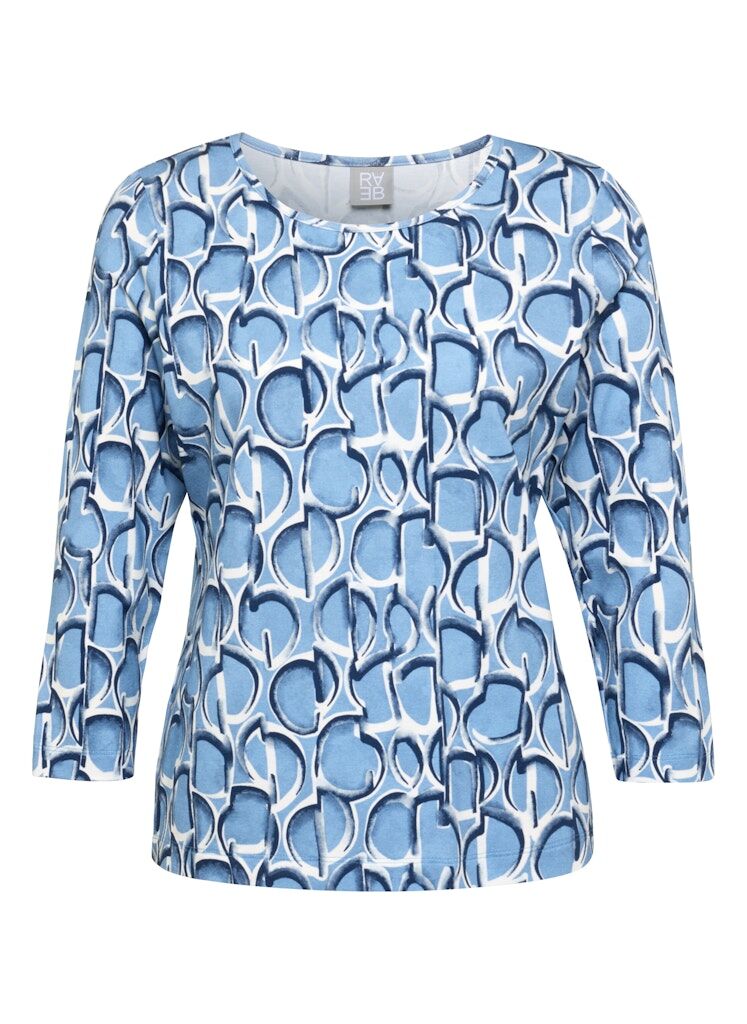 Dieses Shirt zieht mit seinem großen grafischen Allover-Print alle Blicke auf sich und sorgt für einen modernen Look. Der Rundhalsausschnitt und die ¾-Ärmel unterstreichen den zeitlosen Charakter, während das elastische Material hohen Tragekomfort garantiert. Durch die lockere Passform lässt sich das Modell vielseitig kombinieren _ ideal für Alltag.Elastische Qualität für ein angenehmes Tragegefühl.Gerade, leicht figurumspielende Passform.Pflegeleichtes Material.Bringt frische Akzente in jede Garderobe.