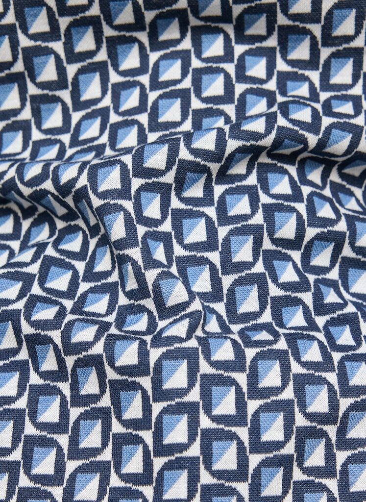 Dieses Shirt beeindruckt mit einem geometrischen Allover-Print, der für eine moderne und dynamische Optik sorgt. Der leicht angeschnittene Stehkragen verleiht dem Design eine besondere Note, während die ¾-Ärmel es vielseitig tragbar machen. Die elastische Qualität garantiert ein angenehmes Tragegefühl und eine optimale Passform.Weiche, elastische Qualität für hohen Komfort.Gerade, locker fallende Passform.Pflegeleichtes Material.Ein echter Hingucker für modische Alltagsoutfits.