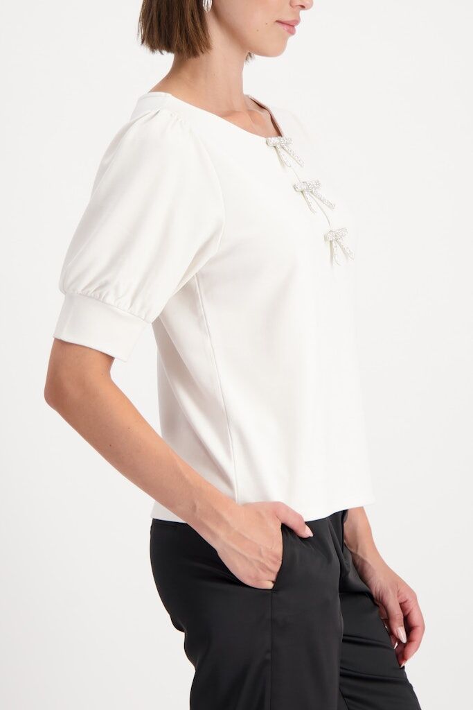 Elegantes Sweatshirt aus einer fließenden Viskose mit glänzenden Strassschleifen-Detail für den stilbewussten Auftritt.