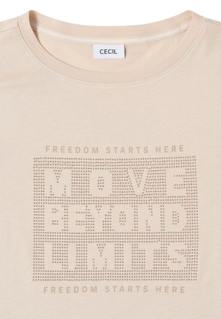 Dieses Shirt von CECIL für Damen punktet mit Wording Artwork und feinen Schmucksteinen für einen stilvollen Akzent. Der U-Boot-Ausschnitt und 3/4-Ärmel unterstreichen den femininen Look. Der weiche Baumwoll-Modalmix rundet das Tragegefühl angenehm ab. Damenshirt Wording Artwork mit Schmucksteinen U-Boot-Ausschnitt 3/4-Arm Softer Baumwoll-Modalmix Material: 50% Baumwolle, 50% Modal