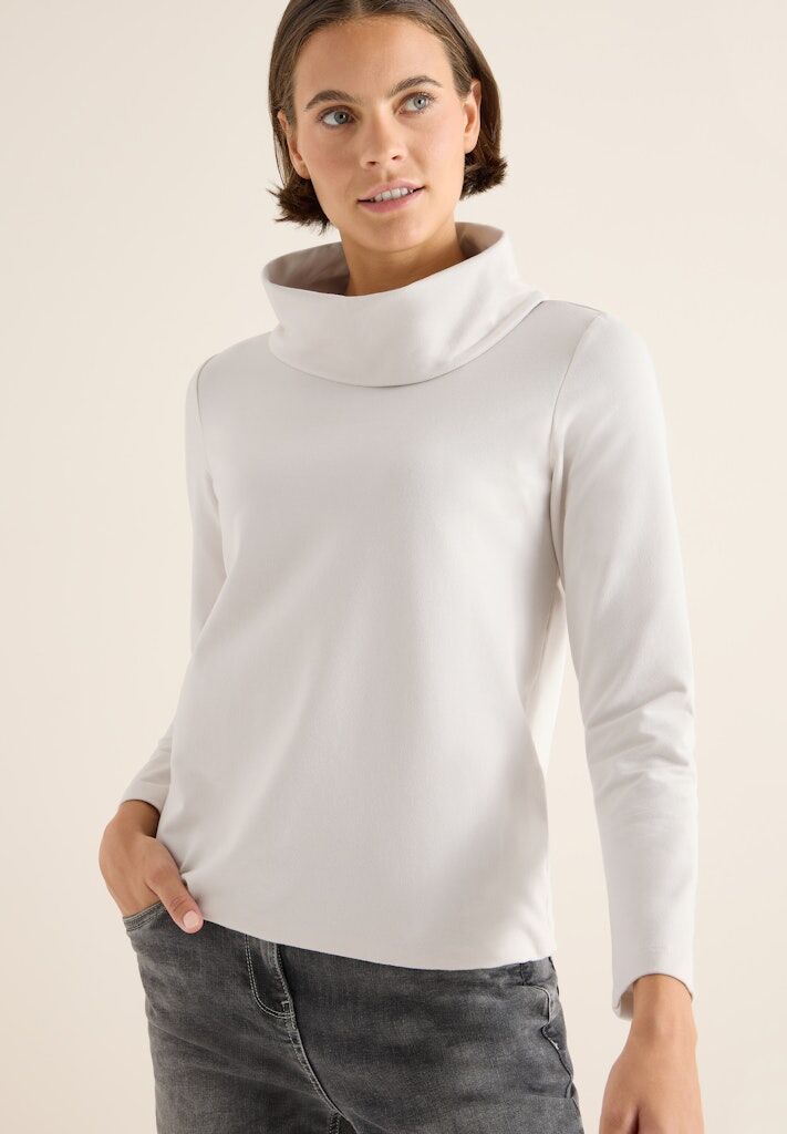 Dieses Shirt von CECIL für Damen begeistert mit einem kuscheligen Kragen und legerem Schnitt. Der elastische Saum und der weiche Modalmix mit Stretchanteil bieten ein besonders angenehmes Tragegefühl. Ideal für gemütliche Looks mit modischem Anspruch. Damenshirt Kuscheliger Kragen Langarm Elastischer Saum Modalmix mit Stretchanteil Material: 63% Modal, 35% Baumwolle, 2% Elasthan