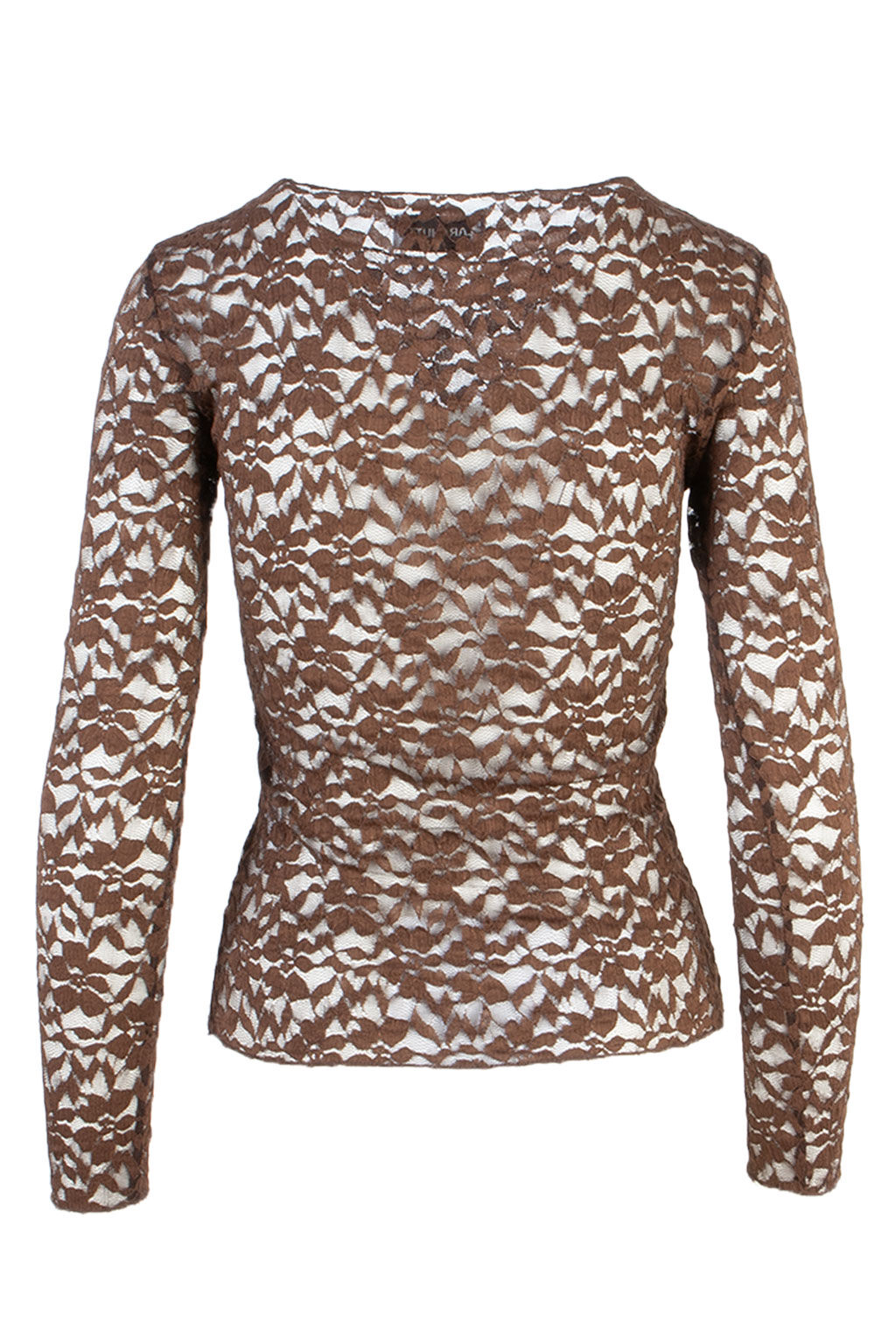 Das florale Spitzenshirt von Larahutt in elegantem Braunton ist ein feminines Highlight für stilvolle Outfits mit einem Hauch Raffinesse. Die filigrane Spitze verleiht dem figurbetonten Design eine zarte Transparenz und macht das Shirt ideal für besondere Anlässe oder modische Layering-Looks.