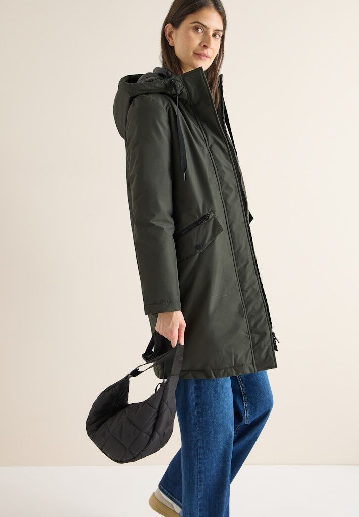 Der sportive Parka von CECIL für Damen begeistert mit funktionalen Details und einem lässigen Look. Dank des innenliegenden Tunnelzugs lässt sich die Taille individuell anpassen – für eine feminine Silhouette trotz bequemer Passform und wärmendem Komfort. Ideal für die kalte Jahreszeit. Damenmantel mit seitlichen Zippern Kapuze mit Tunnelzug Seitliche Taschen Verdeckter Reißverschluss Innenliegender Tunnelzug zum Taillieren Material: Obermaterial: 100% Polyester; Futter: 100% Polyester; Füllung: 100% Polyester