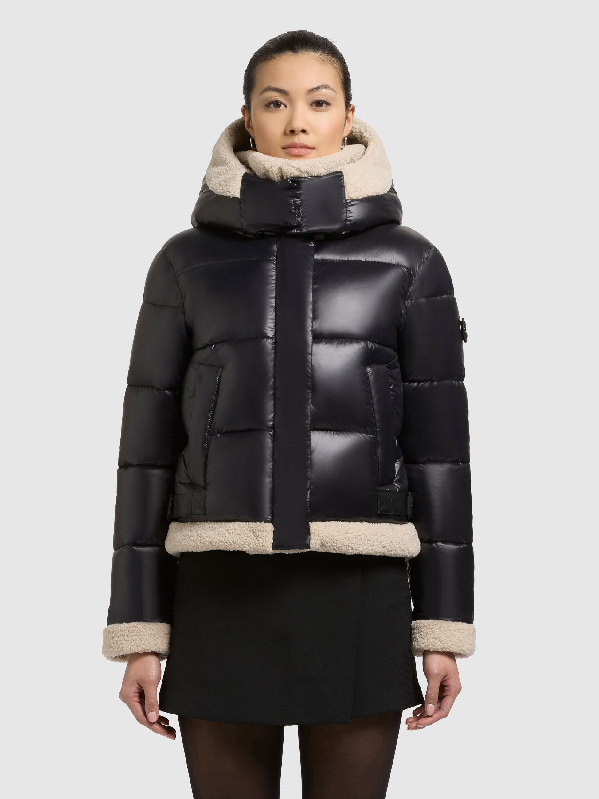 - Details: Abnehmbare Kapuze mit Kunstfellfutter, Teddyfell an Ärmelsaum und Saum, Windschutzblende mit Magnetverschluss, Reißverschlusstaschen mit Fleecefutter, Innentasche, Kunstleder-Verschlüsse