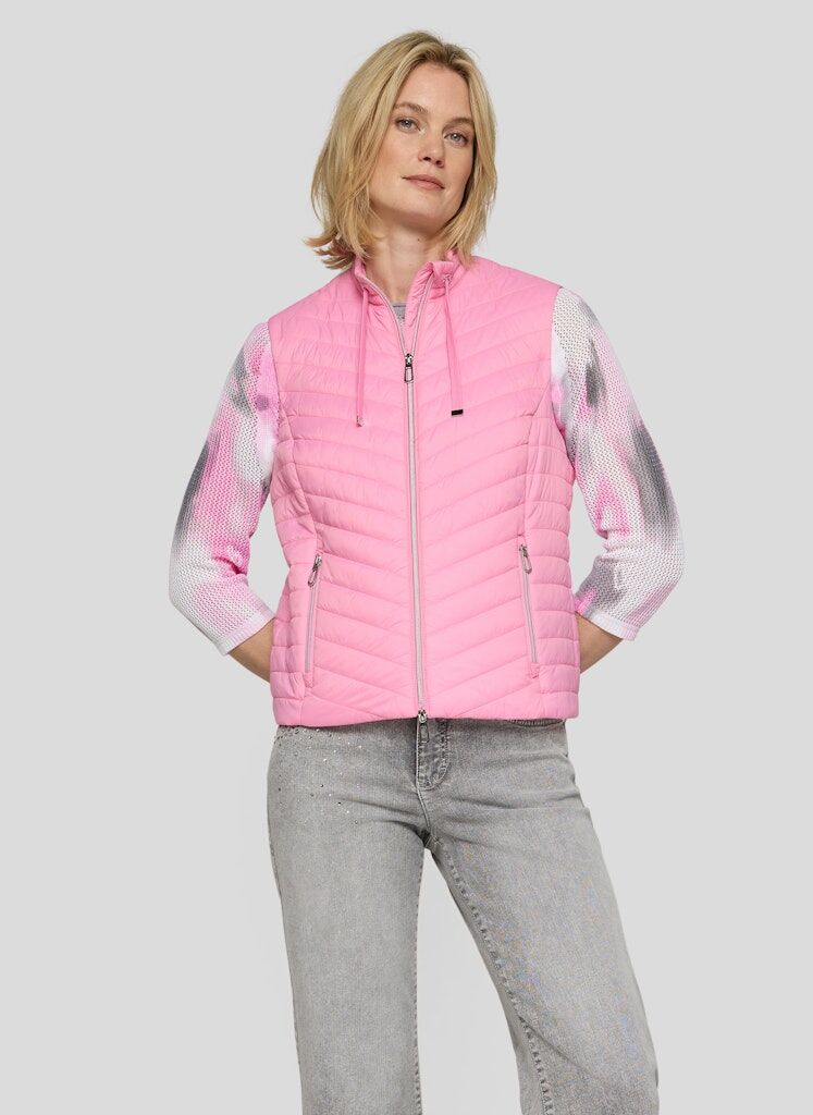 Sportiv und funktional zugleich: Diese leichte Steppweste überzeugt mit moderner Linienführung und angenehmem Tragegefühl. Die feine Wattierung sorgt für wärmenden Komfort, ohne aufzutragen. Ein hochschließender Stehkragen mit Tunnelzug schützt zusätzlich vor Wind, während der durchgehende Reißverschluss und die seitlichen Zipper-Taschen praktische Details bieten. Ein dezentes Marken-Patch im Nacken rundet das cleane Design ab. Leichte Steppqualität. Stehkragen mit Tunnelzug. Durchgehender Reißverschluss. Seitliche Reißverschlusstaschen. Dezentes Marken-Patch hinten.