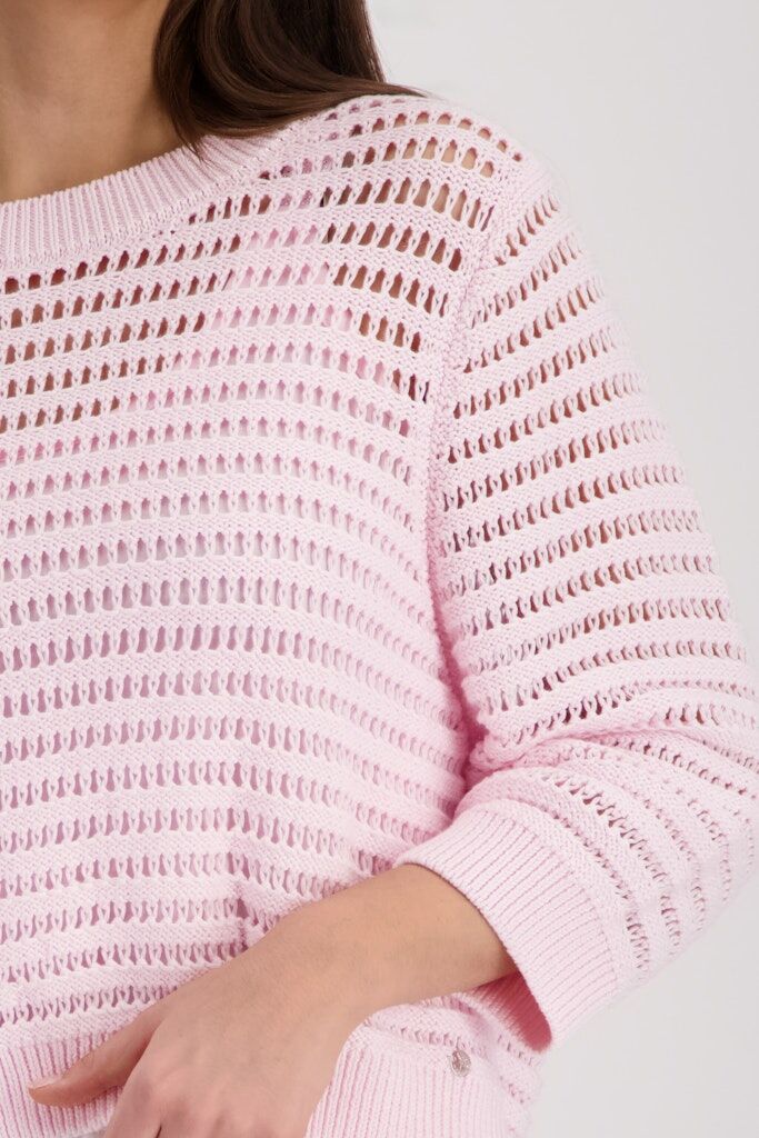 Moderner Ajour-Strickpullover aus 100% Baumwolle mit elegantem Rundhalsausschnitt und lässigen ¾-Ärmeln.
