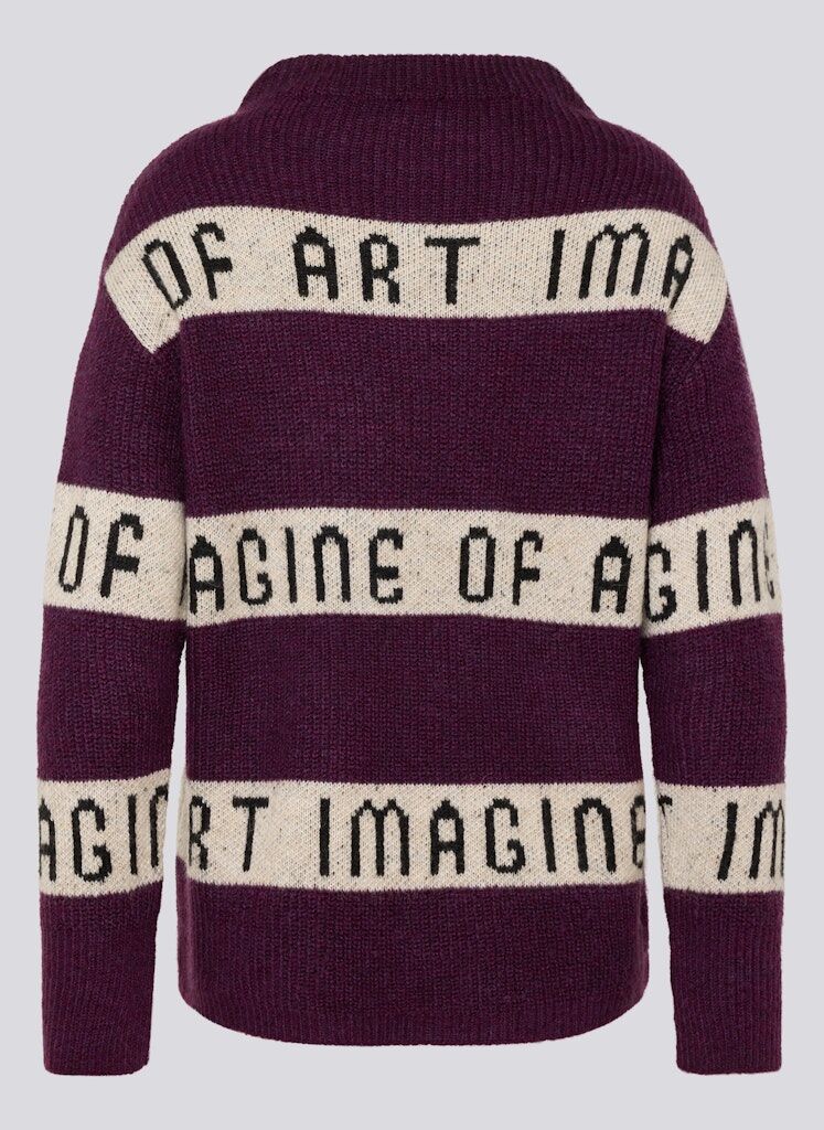 Dieser kuschelige Strickpullover kombiniert auffälliges Design mit Komfort. Die breiten Kontraststreifen mit eingestrickten Lettern sorgen für einen modernen Look. Die legere Passform, der klassische Rundhalsausschnitt und das angenehm weiche Garn mit Alpakawolle machen den Pullover zum idealen Begleiter für kühle Tage. Lockerer Schnitt. Schriftzüge im Strick integriert. Breite Kontraststreifen. Rundhalsausschnitt. Weiches Garn mit Alpakawolle.