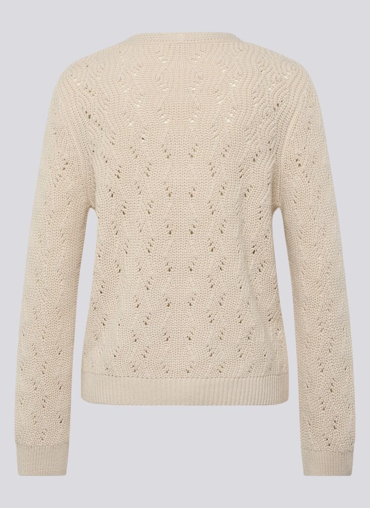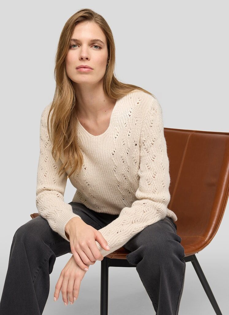 Zarter Ajourstrick trifft auf klassischen Chic: Dieser Pullover punktet mit einem femininen V-Ausschnitt und dezentem Lochmuster entlang der Ärmel und Seiten. Die Mischung aus Polyacryl und Baumwolle sorgt für weichen Griff und angenehmen Tragekomfort. Ein stilvoller Begleiter für Übergangszeit und Alltag. Feines Ajourstrickmuster. Femininer V-Ausschnitt. Rippbündchen an Saum und Ärmel. Pflegeleichte Qualität. Weich und trageangenehm.